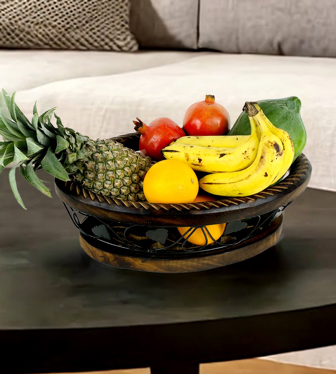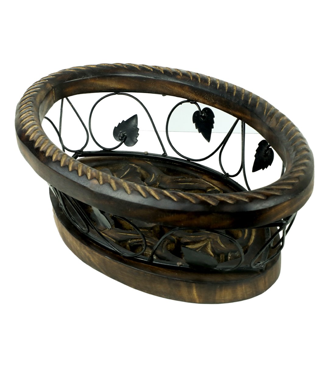 Oval shaped wooden and wrought iron fruit and vegetable Basket/ vessel/ tokri for kitchen and dining table