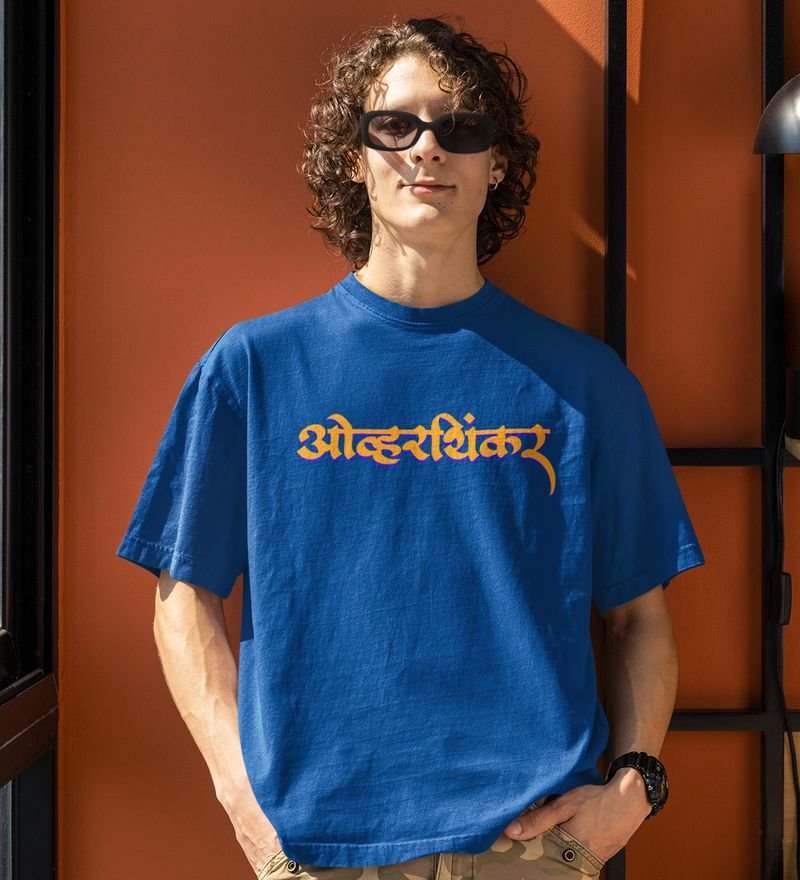 Overthinker Blue Round Neck Cotton Half Sleeved Men T Shirt with Printed Graphics