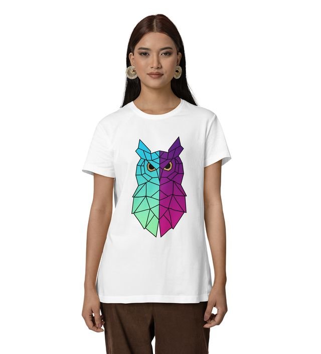 Owl of Two Worlds: Graphic Printed White T-Shirt