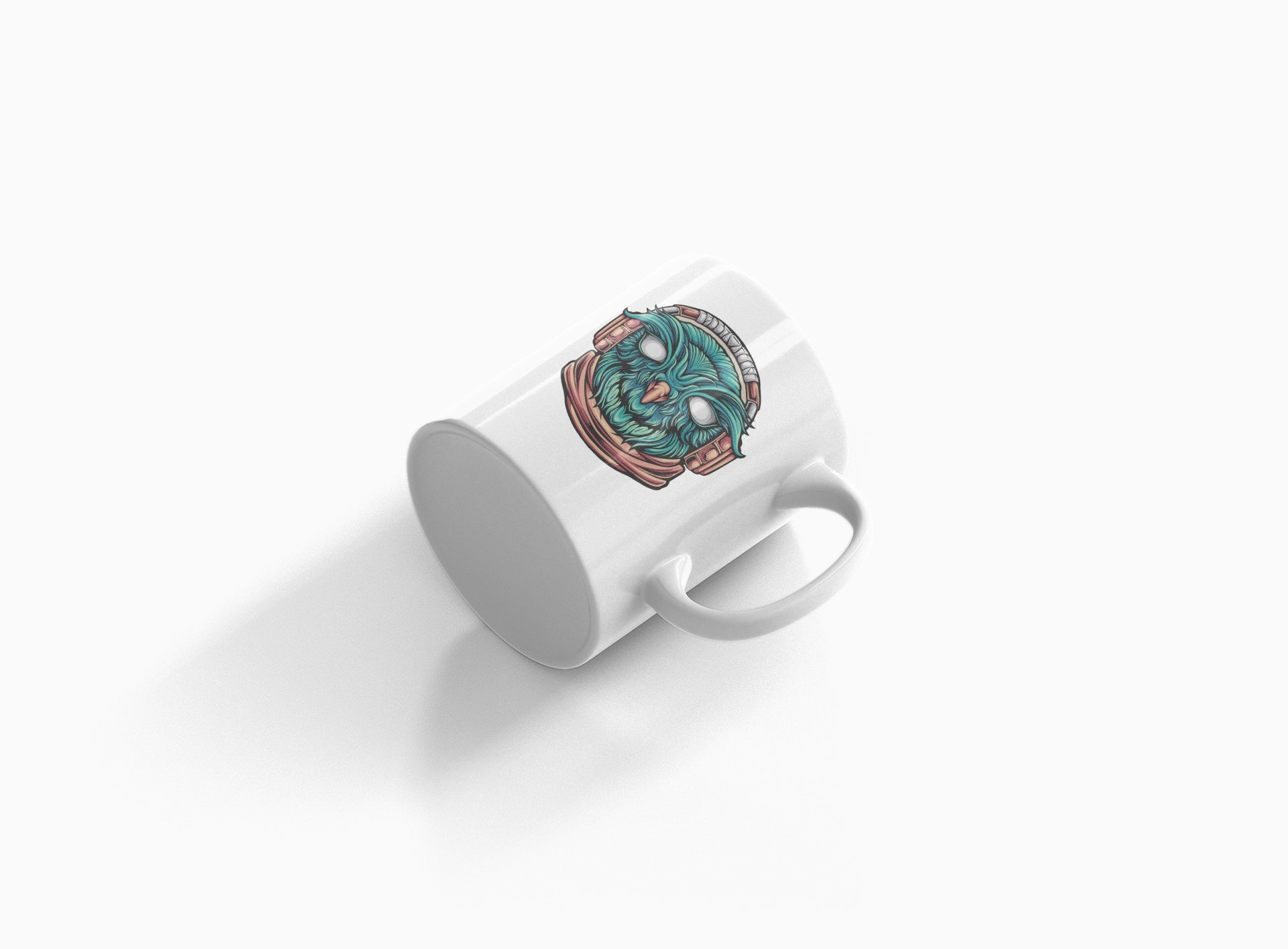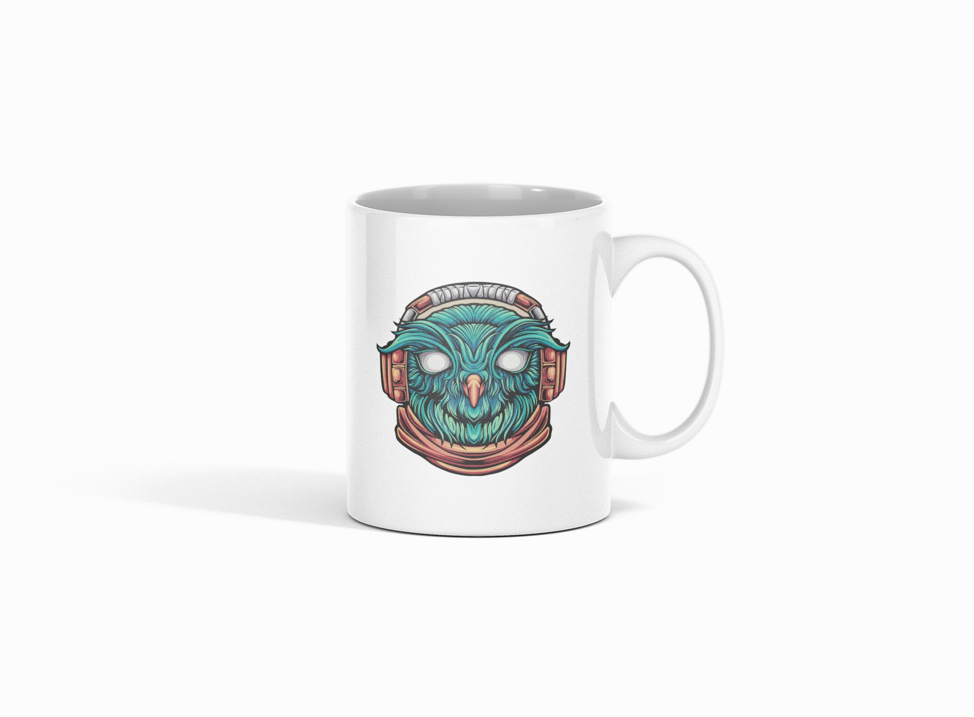 Owl with headphone - animation themed printed ceramic white coffee and tea mugs/ cups for animation lovers