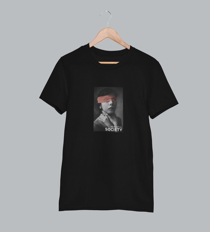 Pacifist Society, Urban Legend Series: Black Men's Oversized Round Neck T-Shirt with Front Print