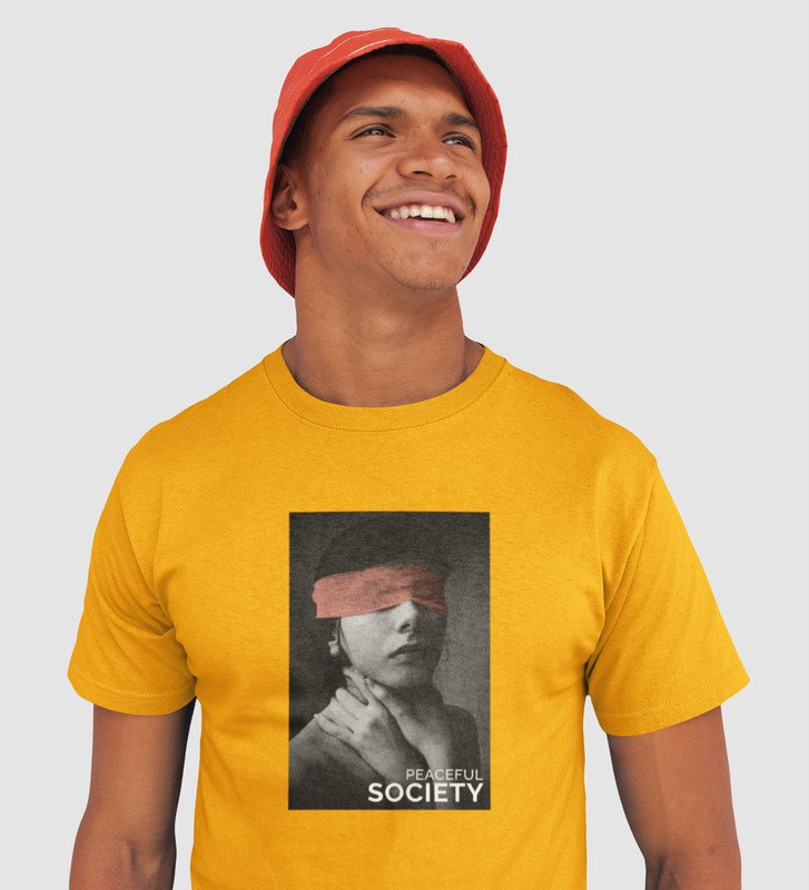 Pacifist Society, Urban Legend Series: Yellow Men's Oversized Round Neck T-Shirt with Front Print