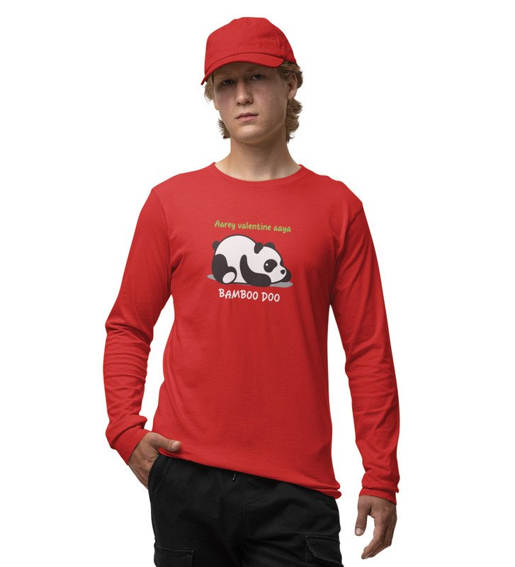 Panda Wants Bamboo: Attractive Printed (red) Full Sleeve T-Shirt For Singles