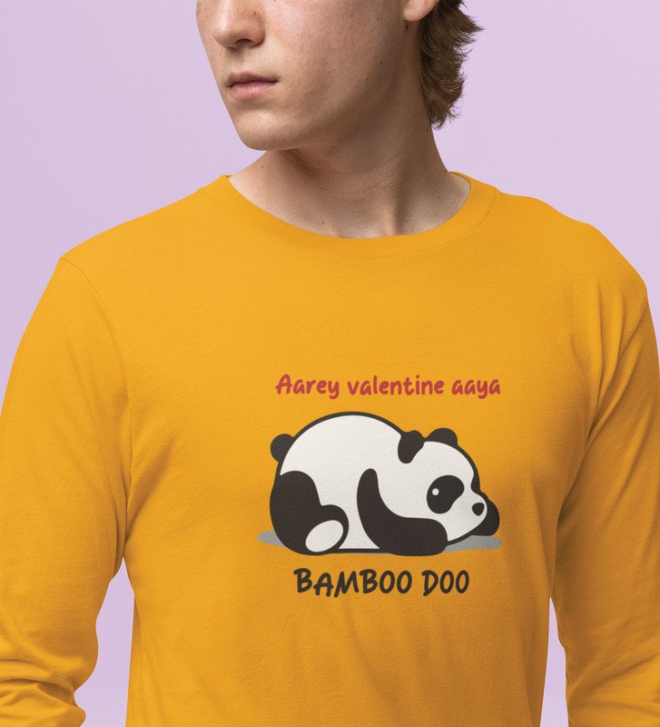 Panda Wants Bamboo: Attractive Printed (yellow) Full Sleeve T-Shirt For Singles