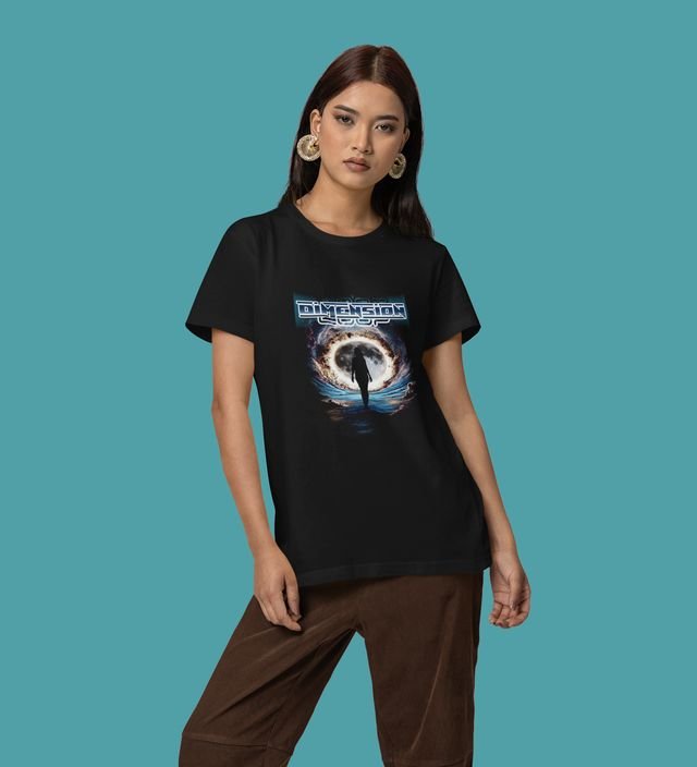 Parallel Drift: Dimension Graphic Printed Black T-Shirt