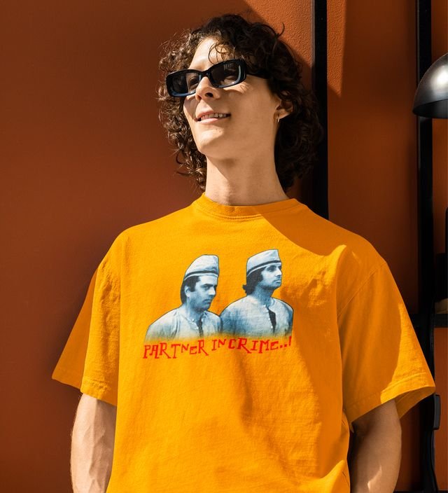 Partner In Crime Yellow Round Neck Cotton Half Sleeved Men T-Shirt with Printed Graphics