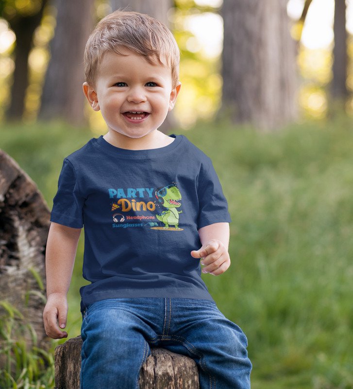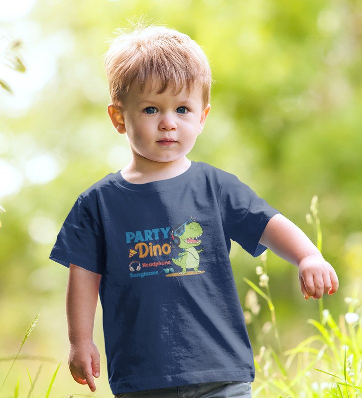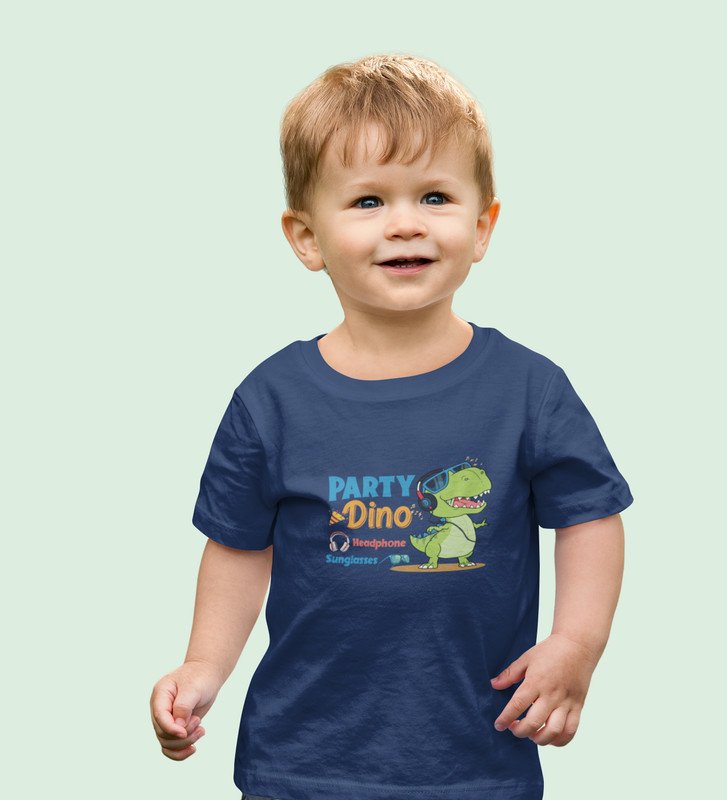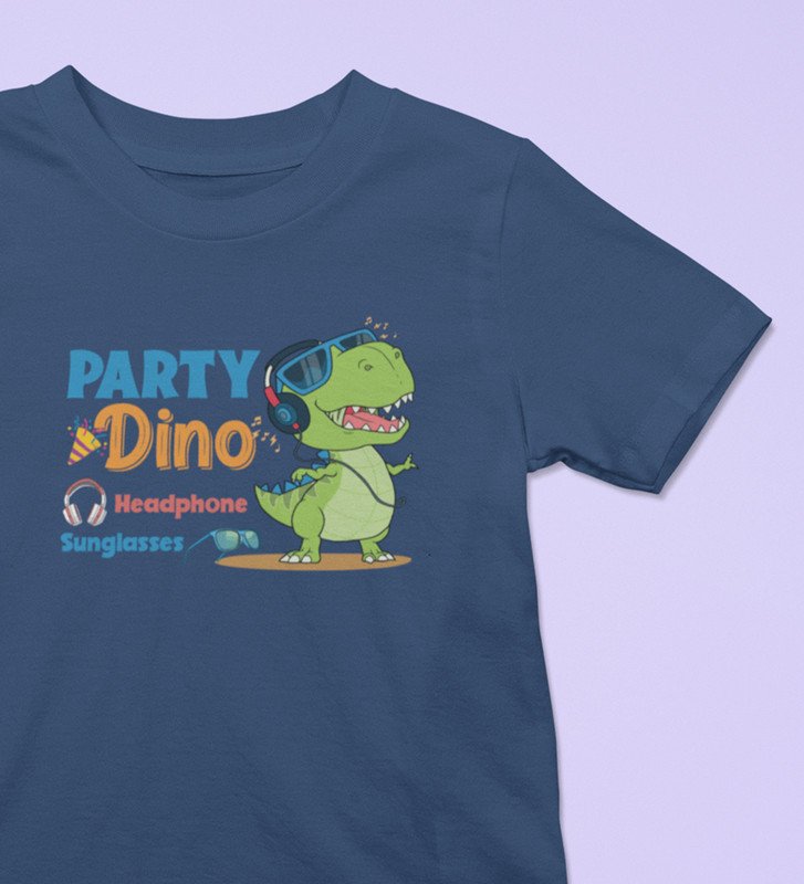 Party Animal Dino,Boys Cotton Printed T-shirt (Navy Blue)