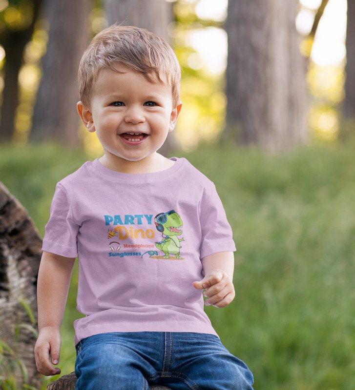 Party Animal Dino,Boys Cotton Printed T-shirt (Purple)