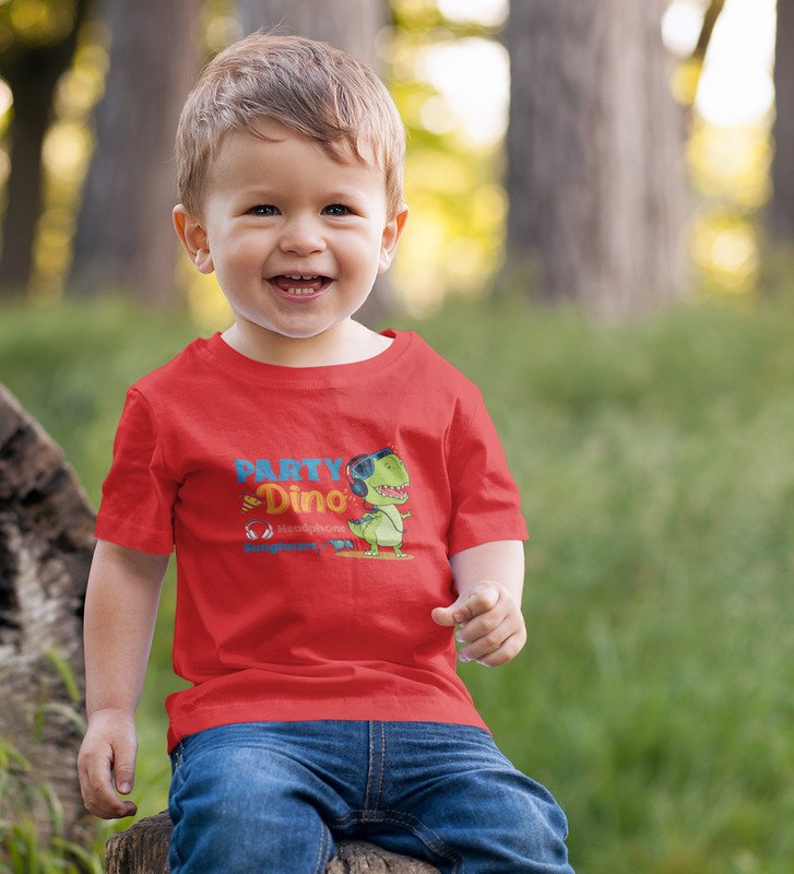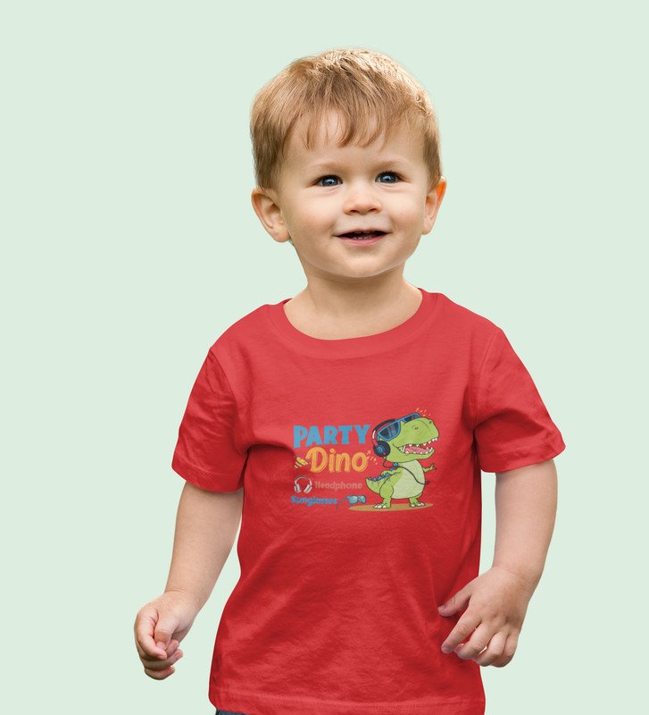 Party Animal Dino,Boys Cotton Printed T-shirt (Red)