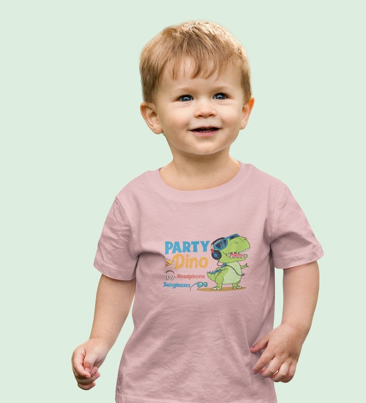 Party Animal Dino,Boys Cotton Printed Tshirt (baby pink)