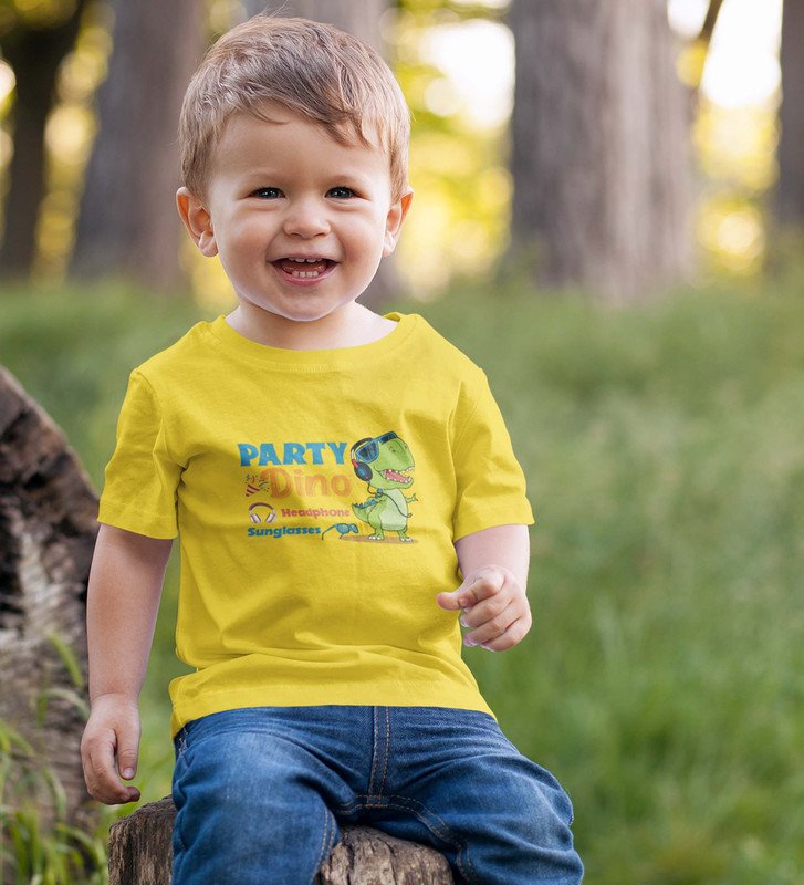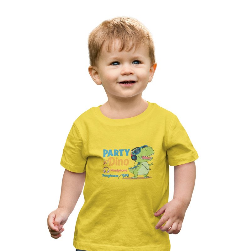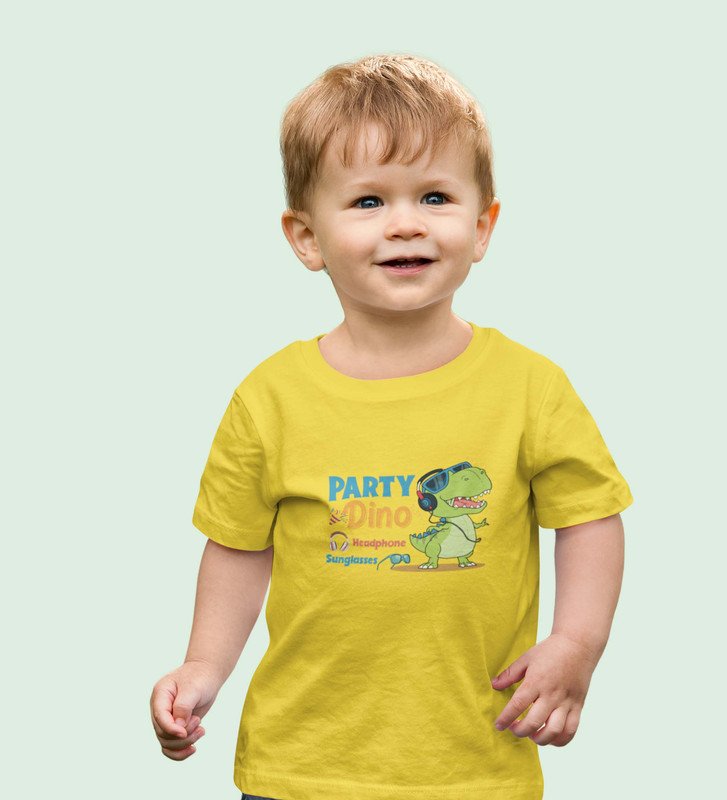Party Animal Dino,Boys Cotton Printed Tshirt (Yellow)
