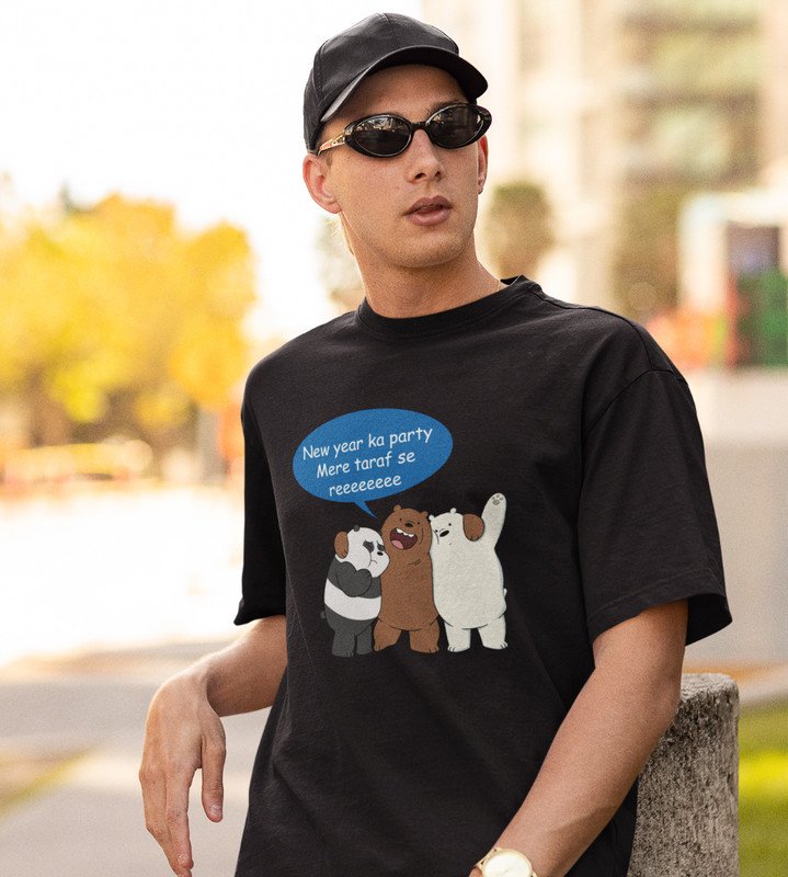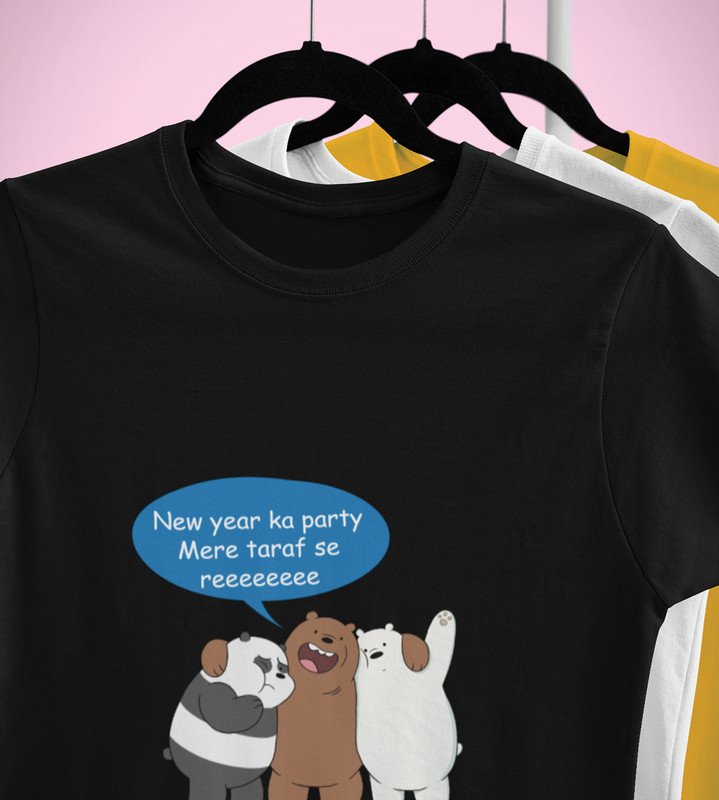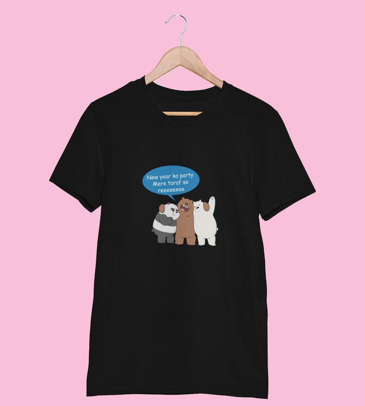5. Party Is Mine BlackPrinted T-shirt For Mens On New Year Theme