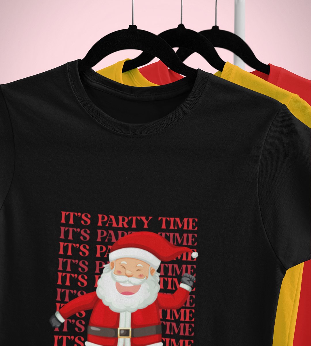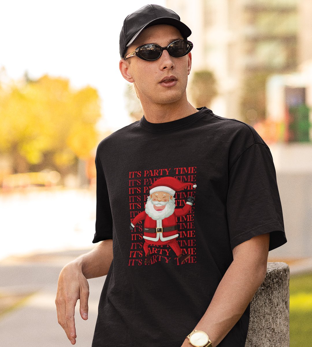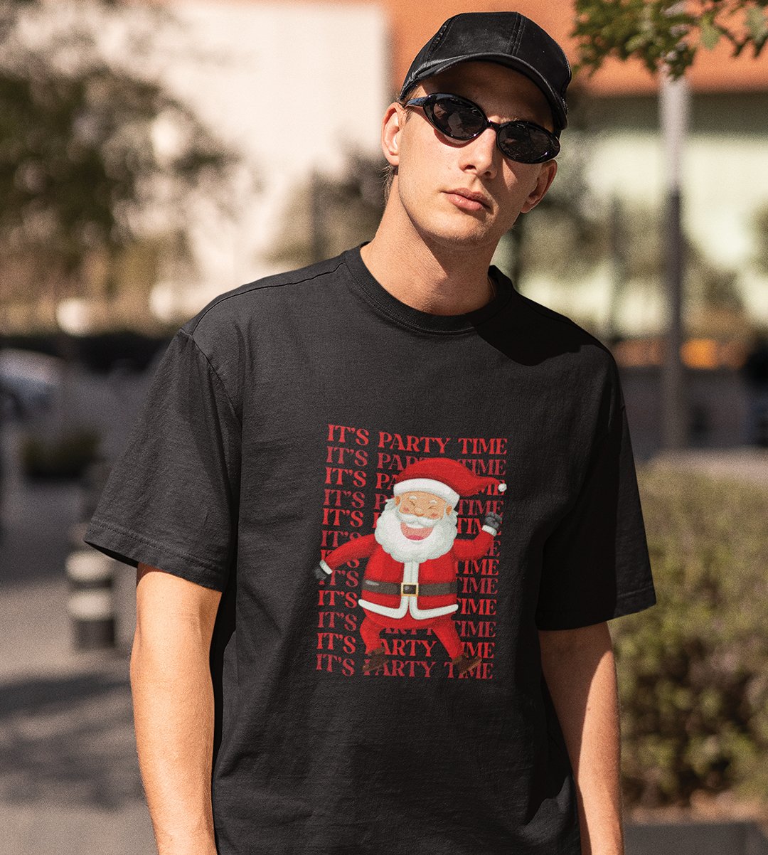 Party Time Santa: Happy Santa Printed Amazing T-shirt (Black) Best Gift For Secret Santa