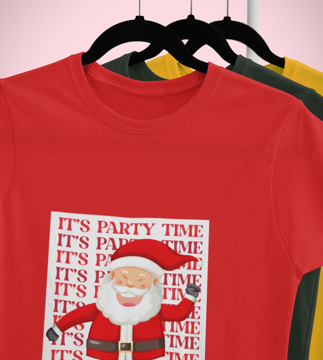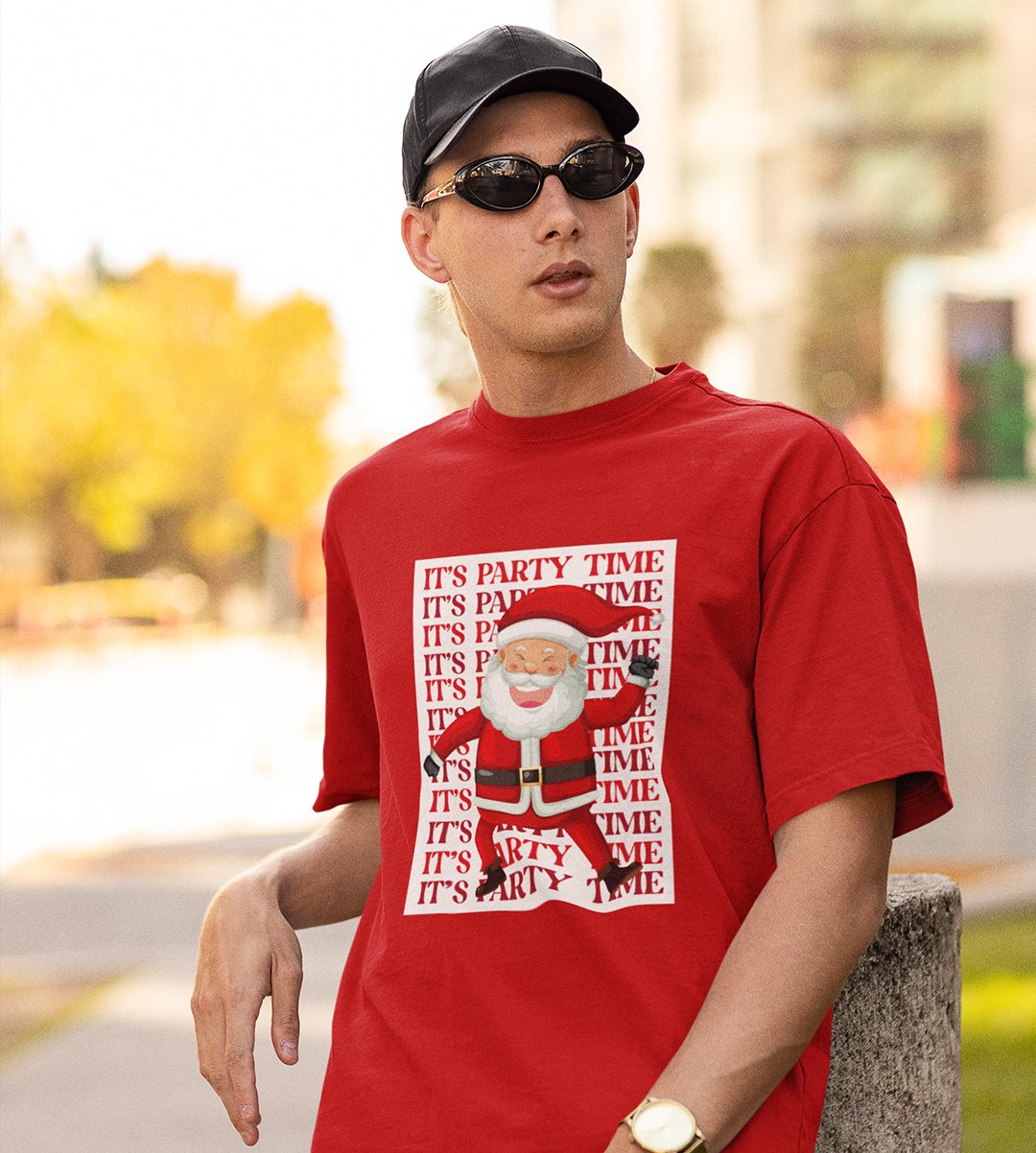 Party Time Santa: Happy Santa Printed Amazing T-shirt (Red) Best Gift For Secret Santa