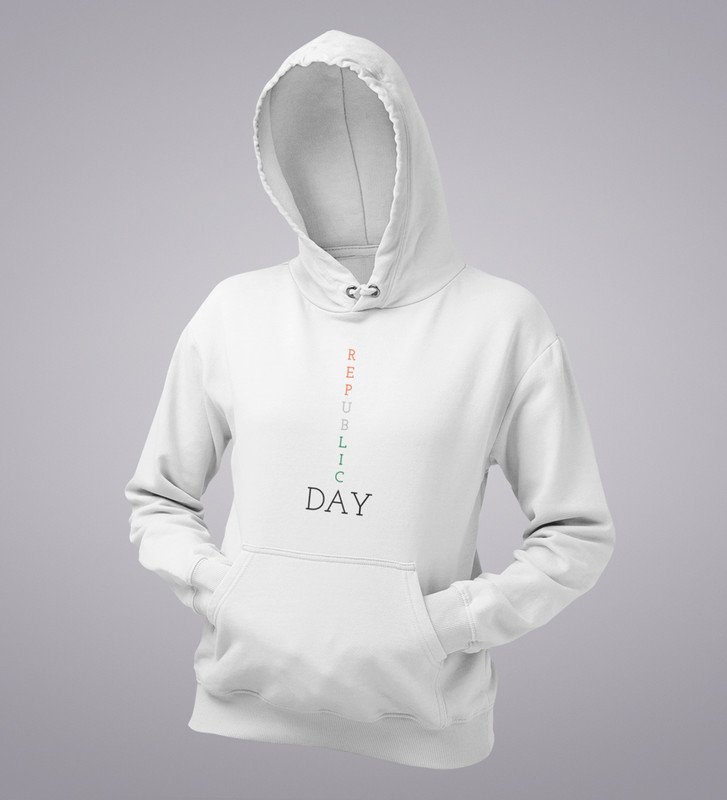 Patriotic Republic Day White Men Printed Round Neck Hoodies