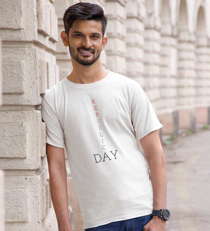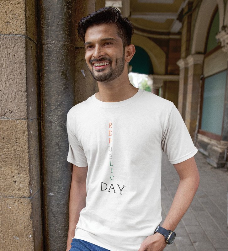 Patriotic Republic Day White Men Printed Round Neck T-shirts