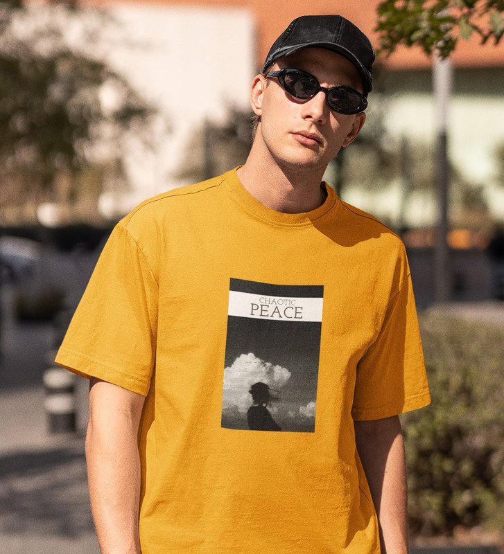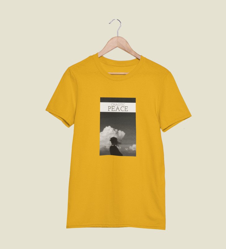 Peaceful Chaos, Yellow Cityscape Chronicles: Front Printed Round Neck Tee - Men's Edition