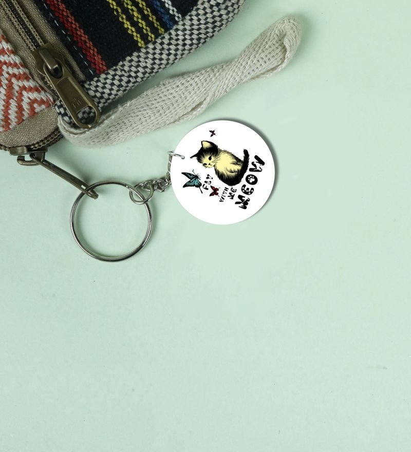 Peaceful Kitty And Nature Theme Printed Round Keychain Pack of 2