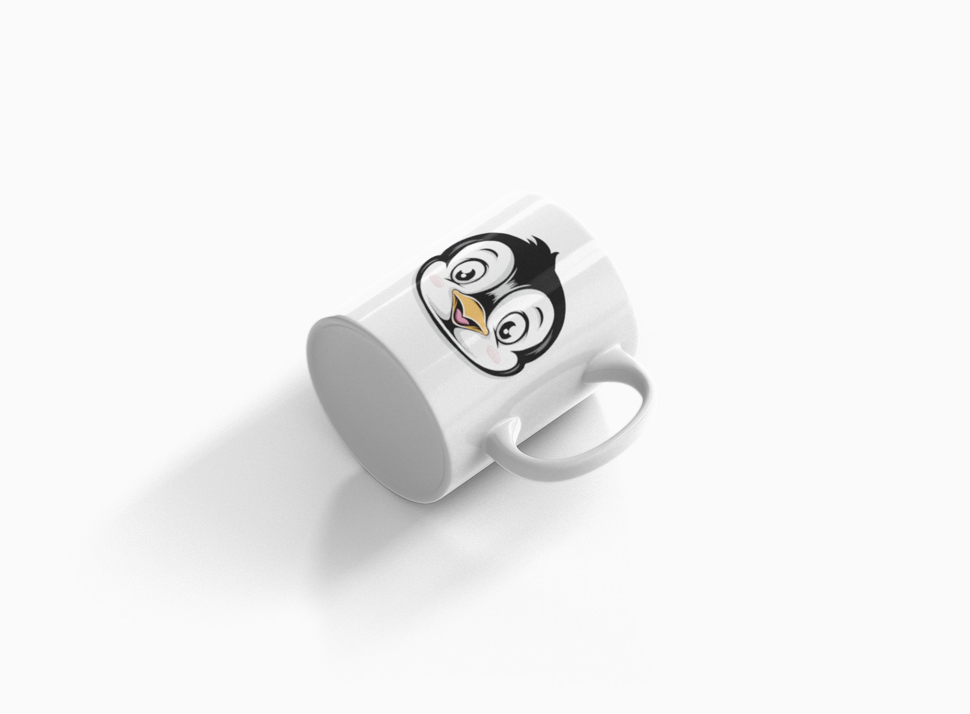 Penguin face - animation themed printed ceramic white coffee and tea mugs/ cups for animation lovers