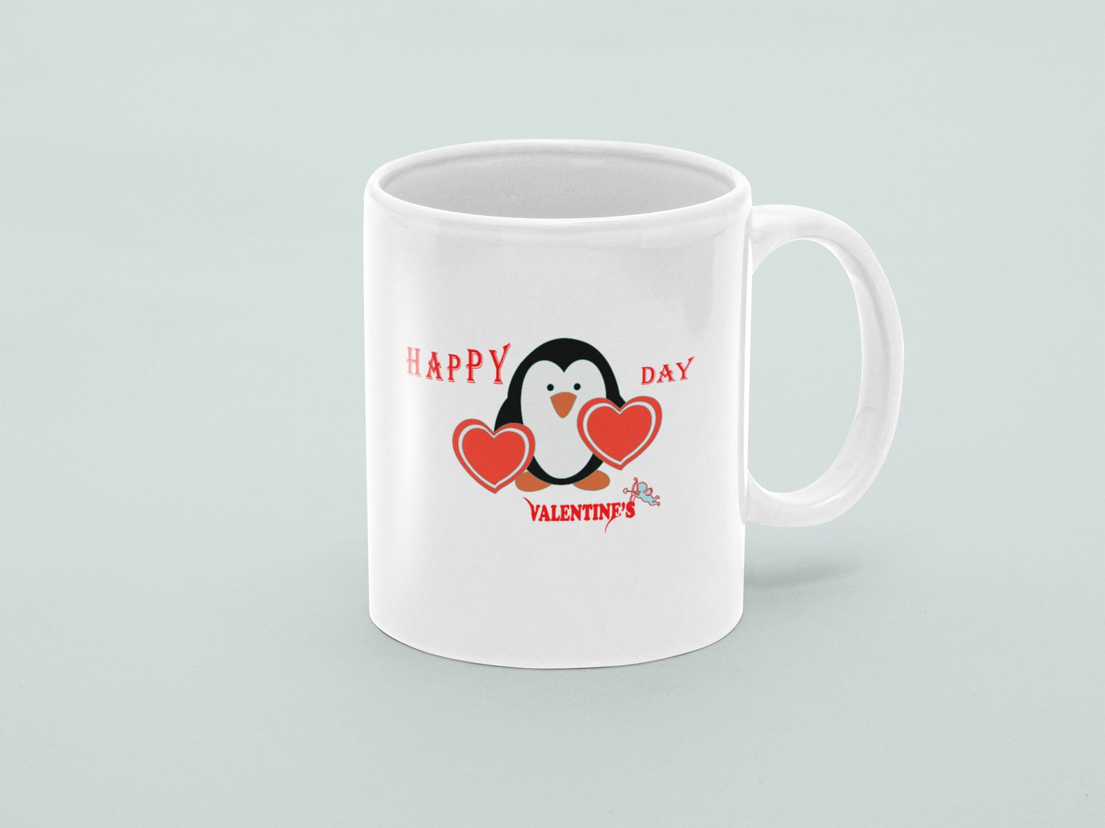 Penguin With Hearts - valentine themed printed ceramic white coffee and tea mugs/ cups