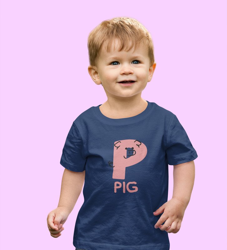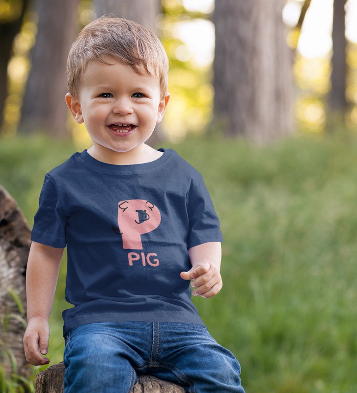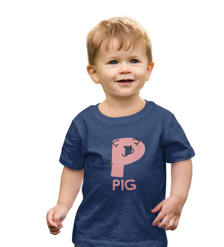 Pepper Pig, Boys Cotton Text Print tshirt (Navy blue)