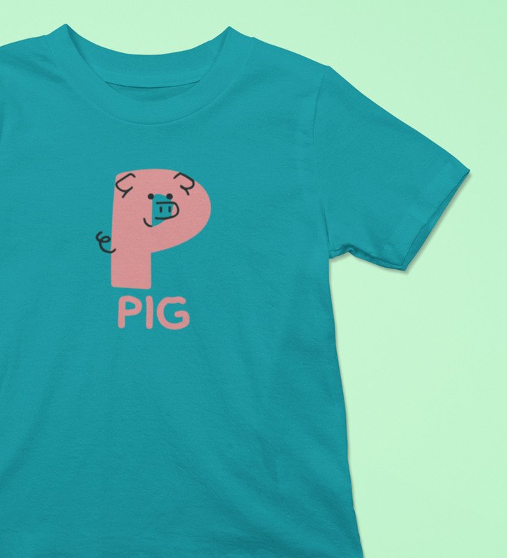 Pepper Pig, Boys Cotton Text Print Tshirt (Teal)