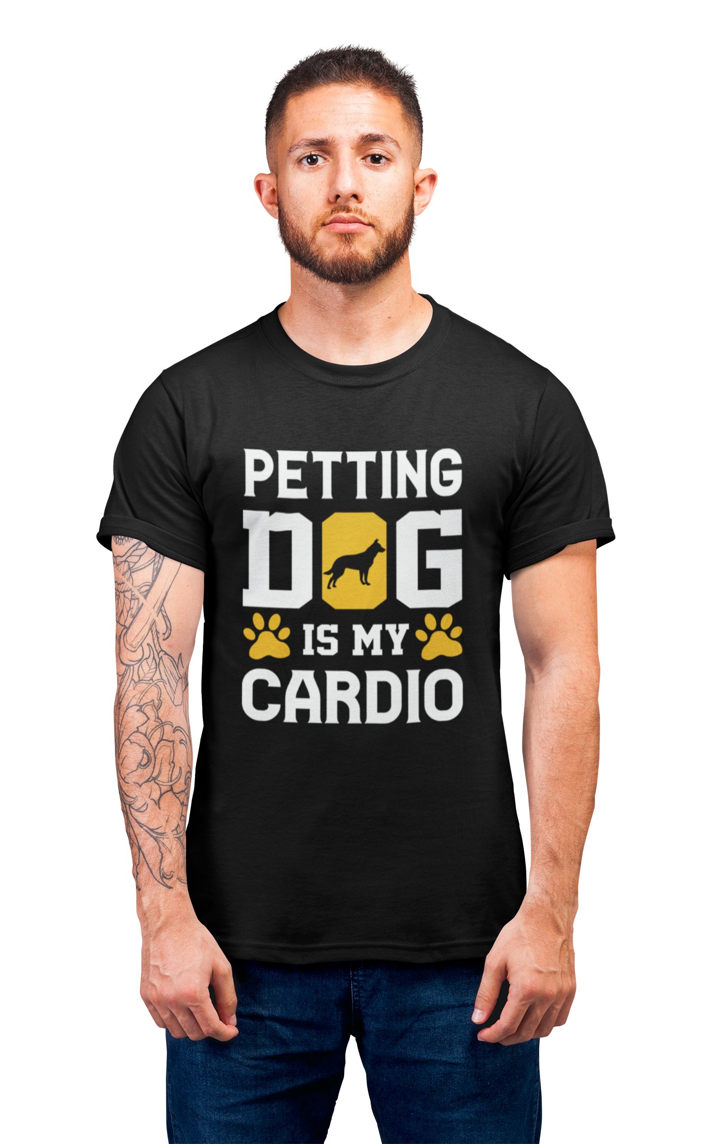 Petting Dog Is My Cardio - printed stylish Black cotton tshirt- tshirts for men