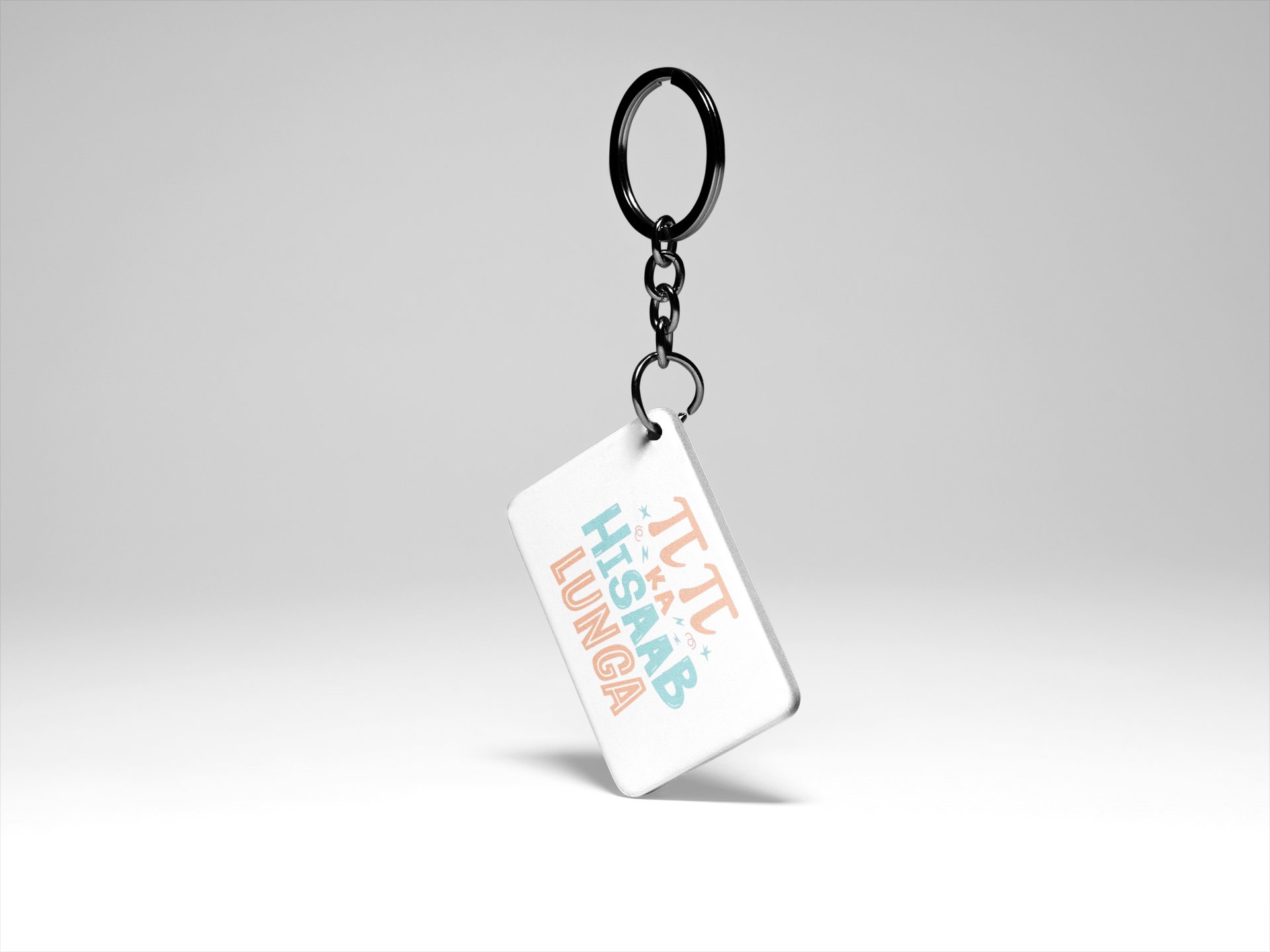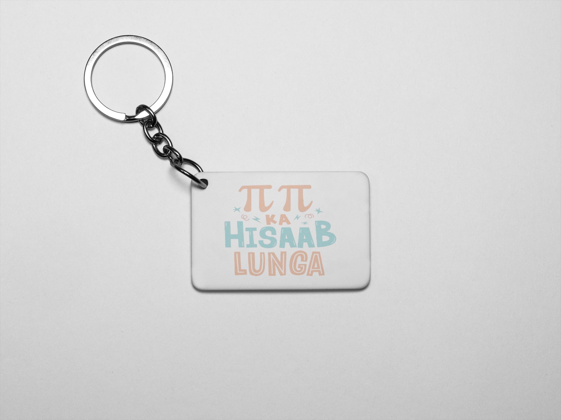 Pi Pi Ka Hisab Lunga- acryllic printed white keychains/ keyrings for bollywood lover people(Pack Of 2)