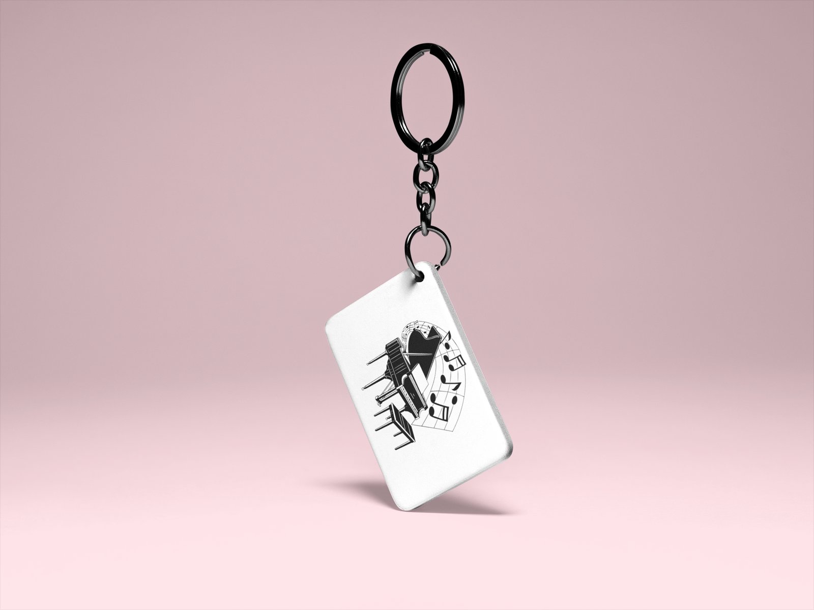 Piano with Musical Slanted beamed -White -Designable Musicllnstrument Keychain ( Combo Set Of 2)