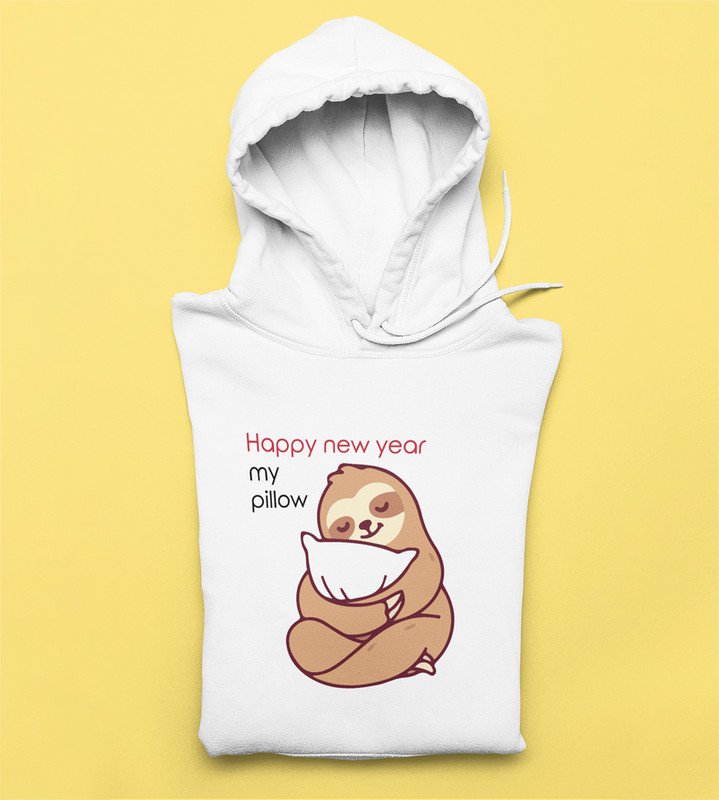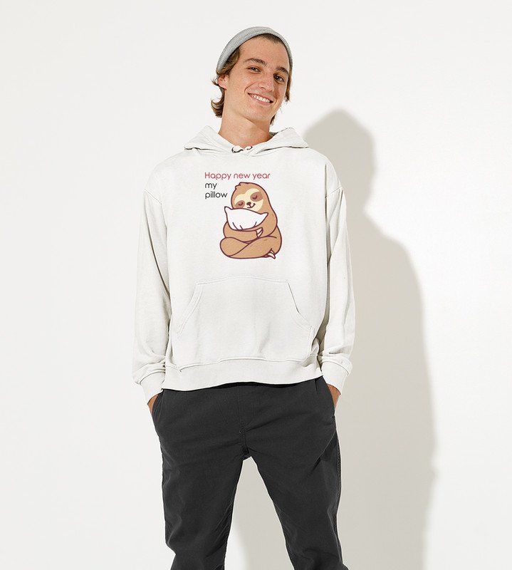 Pillow And New Year White Graphic Printed Hoodies For Mens Boys