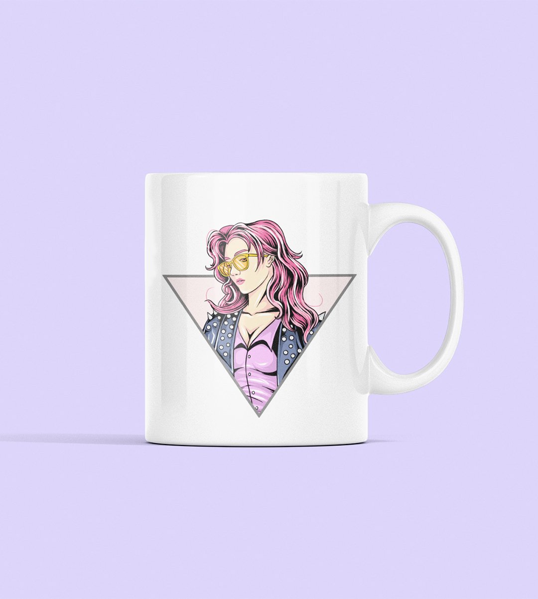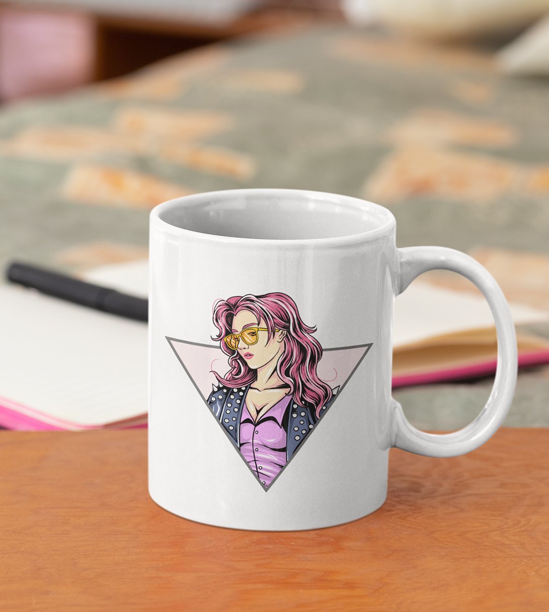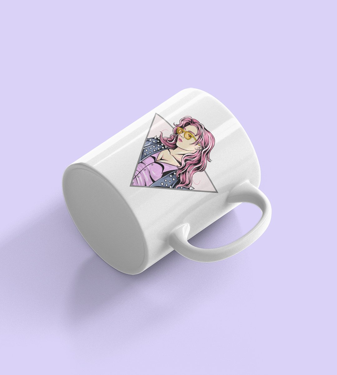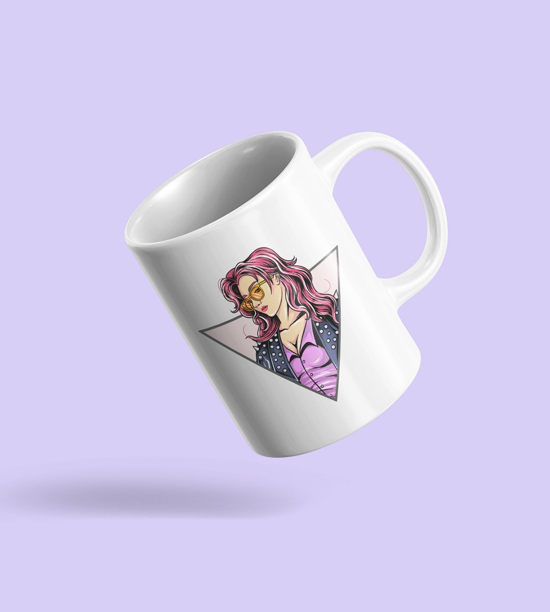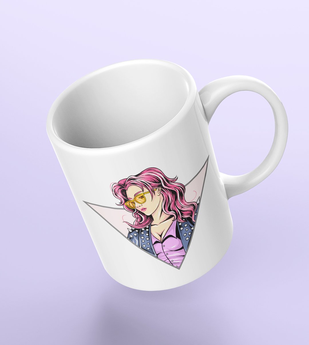 Pink hair girl - animation themed printed ceramic white coffee and tea mugs/ cups for animation lovers
