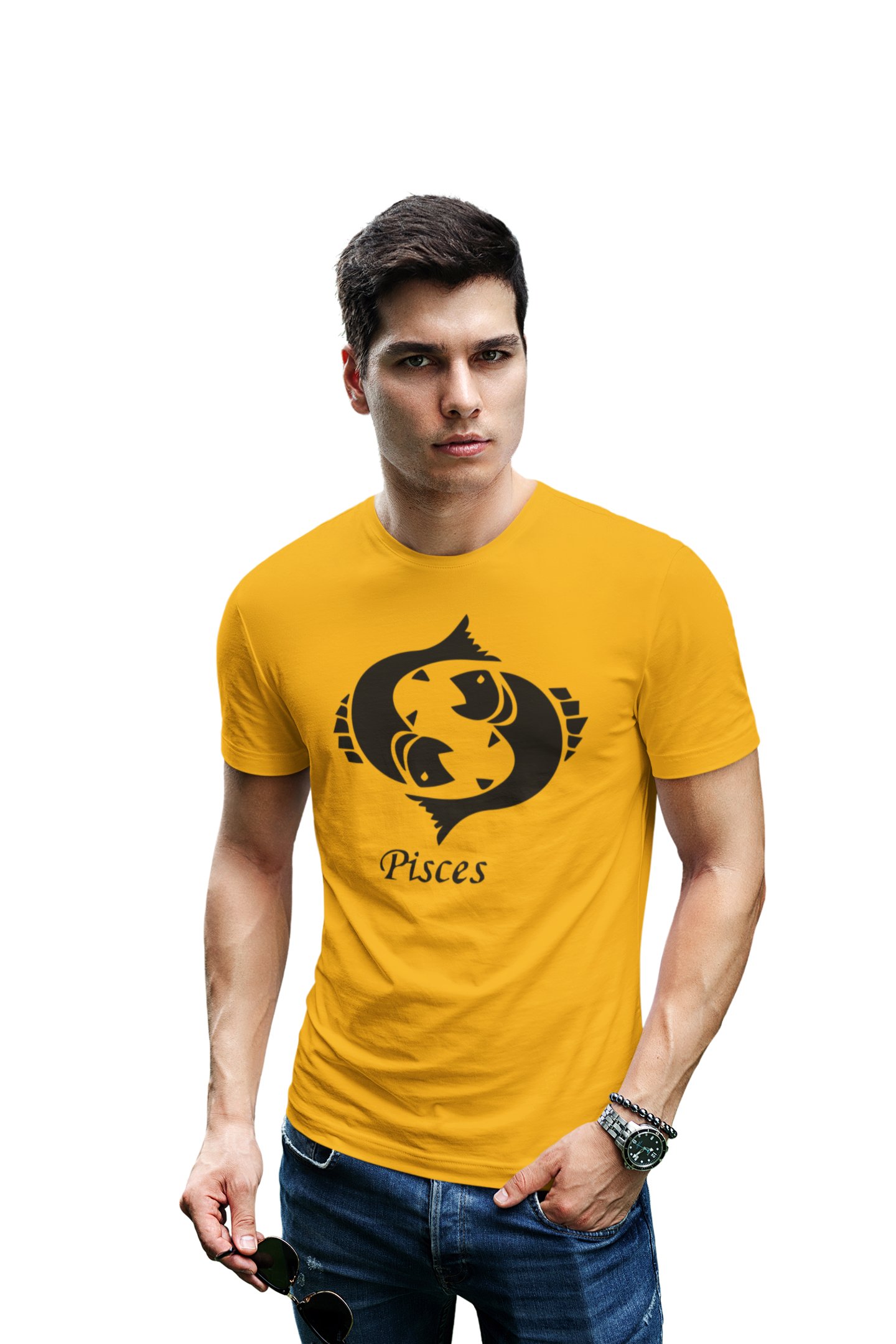 Pisces (BG Black) (Yellow T) - Printed Zodiac Sign Tshirts - Made especially for astrology lovers people