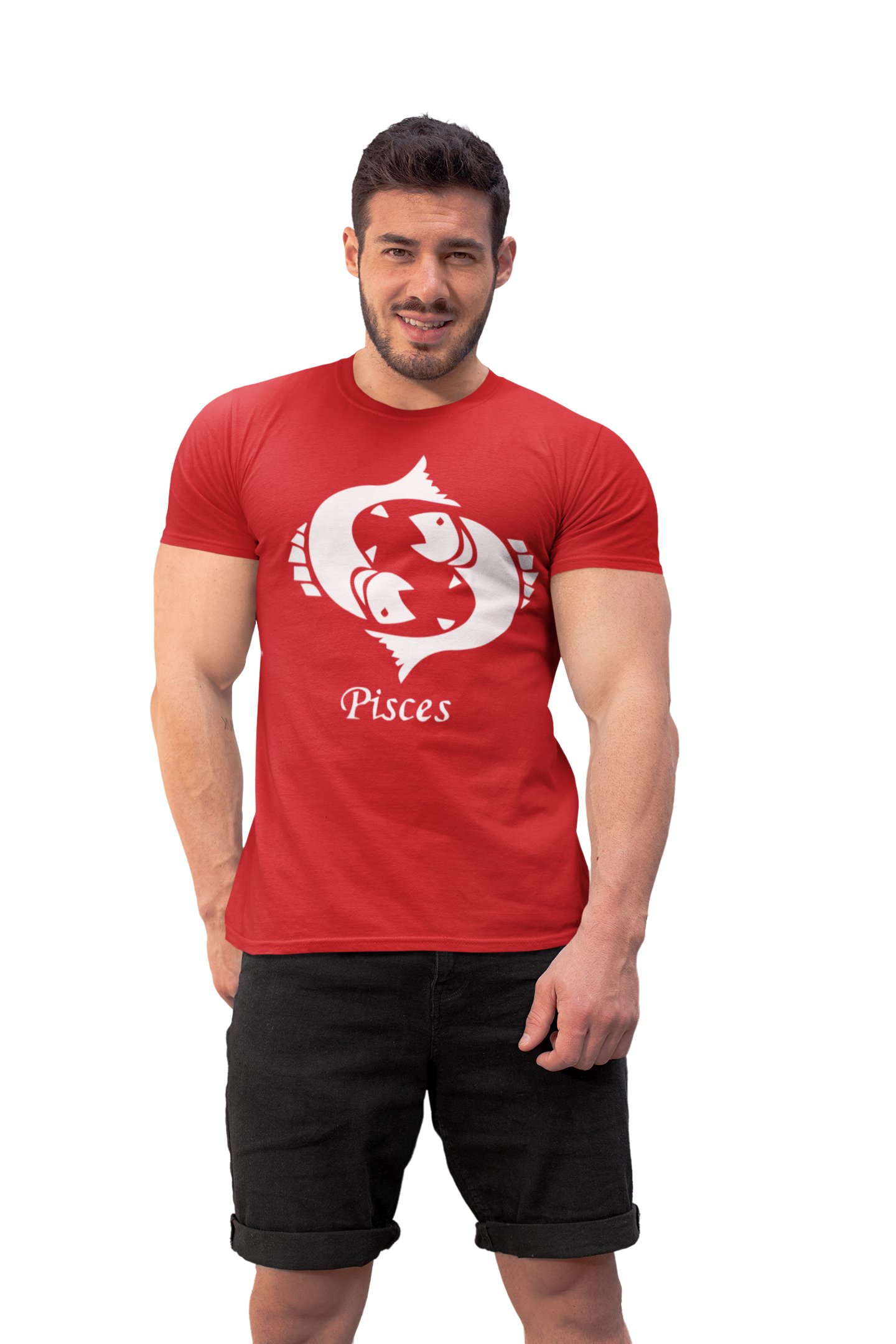 Pisces (BG white) (Red T) - Printed Zodiac Sign Tshirts - Made especially for astrology lovers people