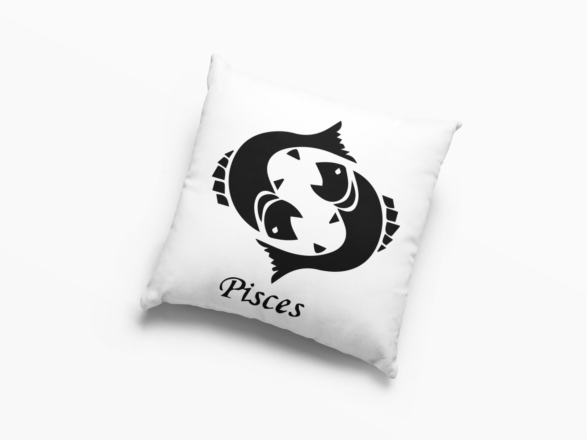 Pisces Text With Symbol - Printed Pillow Covers(Pack Of 2)