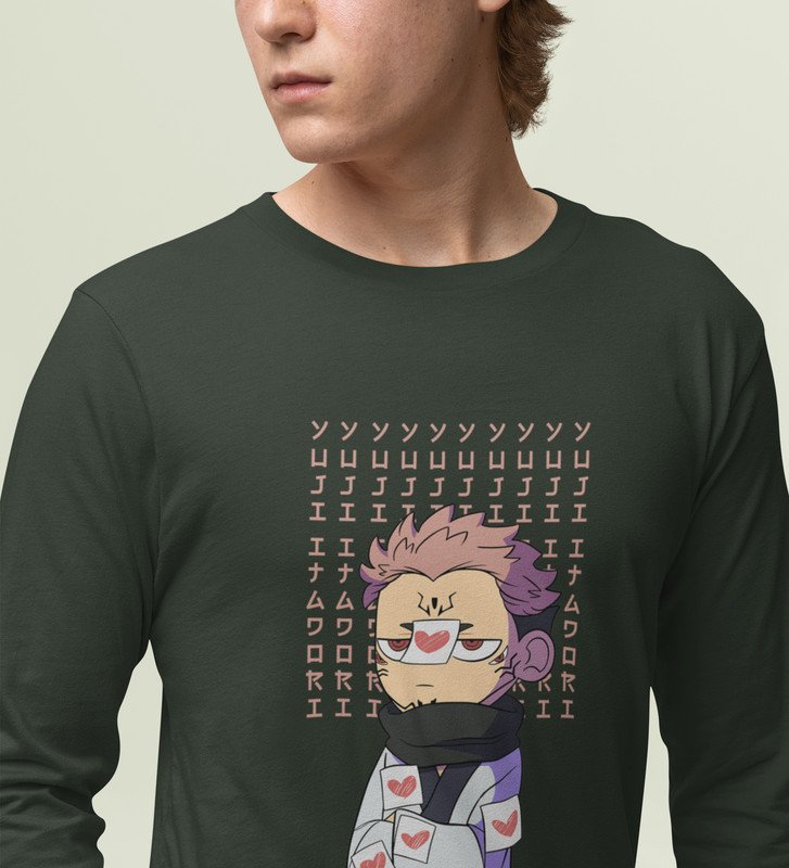 Pissed Itadori Cotton Green Full Sleeves Tshirt For Mens and Boys
