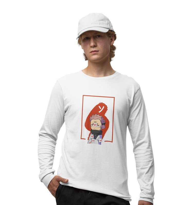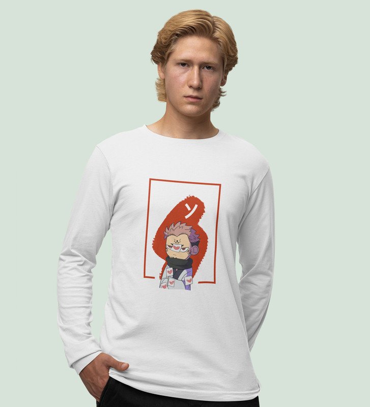 Pissed Itadori Cotton White Full Sleeves Tshirt For Mens and Boys