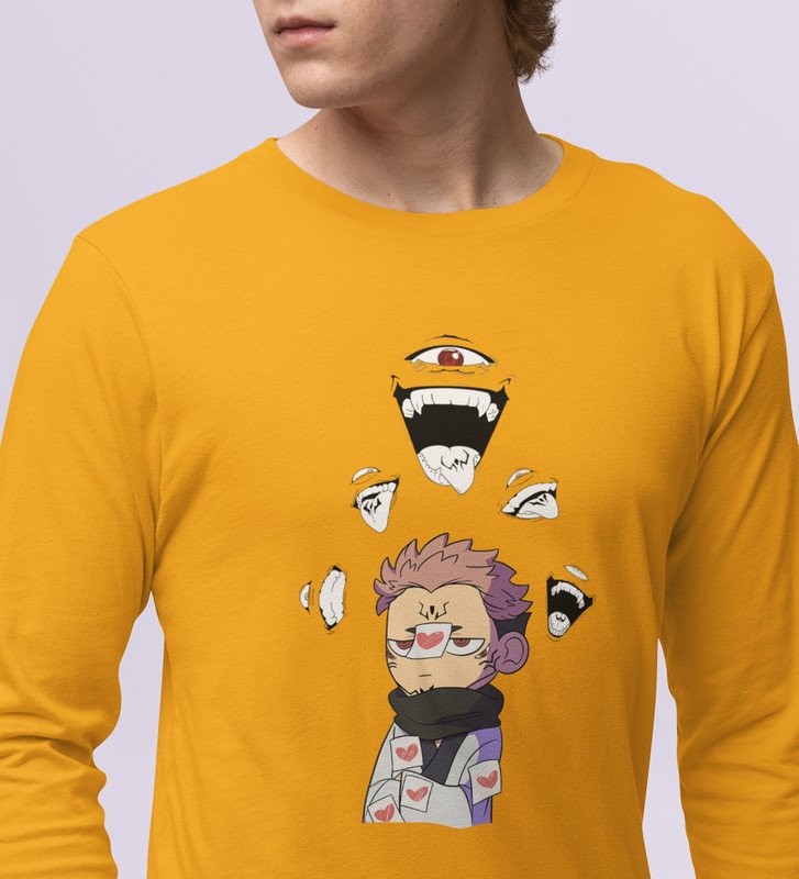 Pissed Itadori Cotton Yellow Full Sleeves Tshirt For Mens and Boys