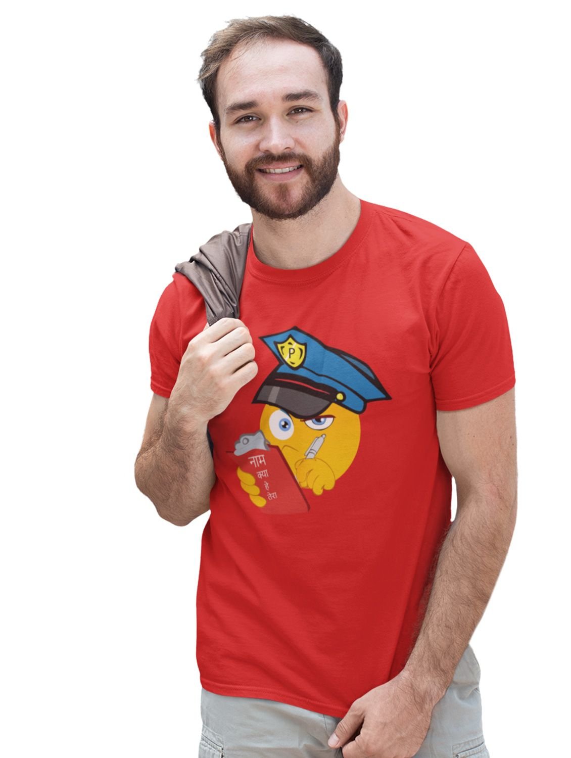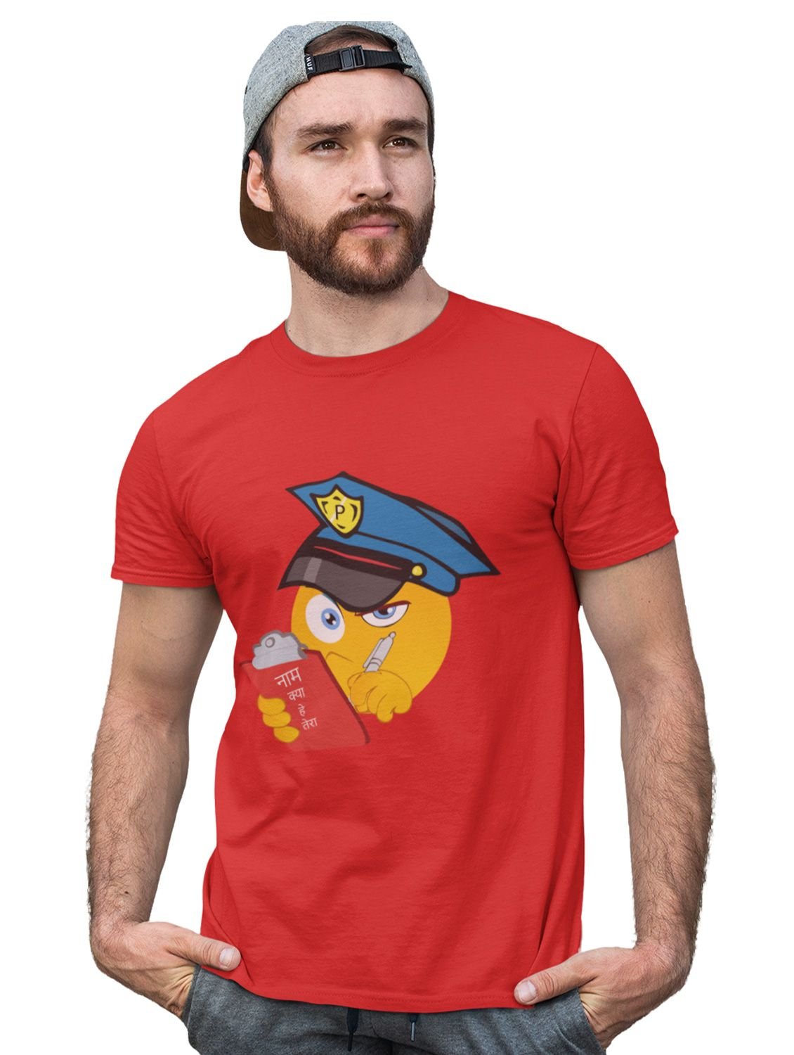 Please be Aware, Police is Here Emoji T-shirt (Red) - Clothes for Emoji Lovers - Foremost Gifting Material for Your Friends and Close Ones