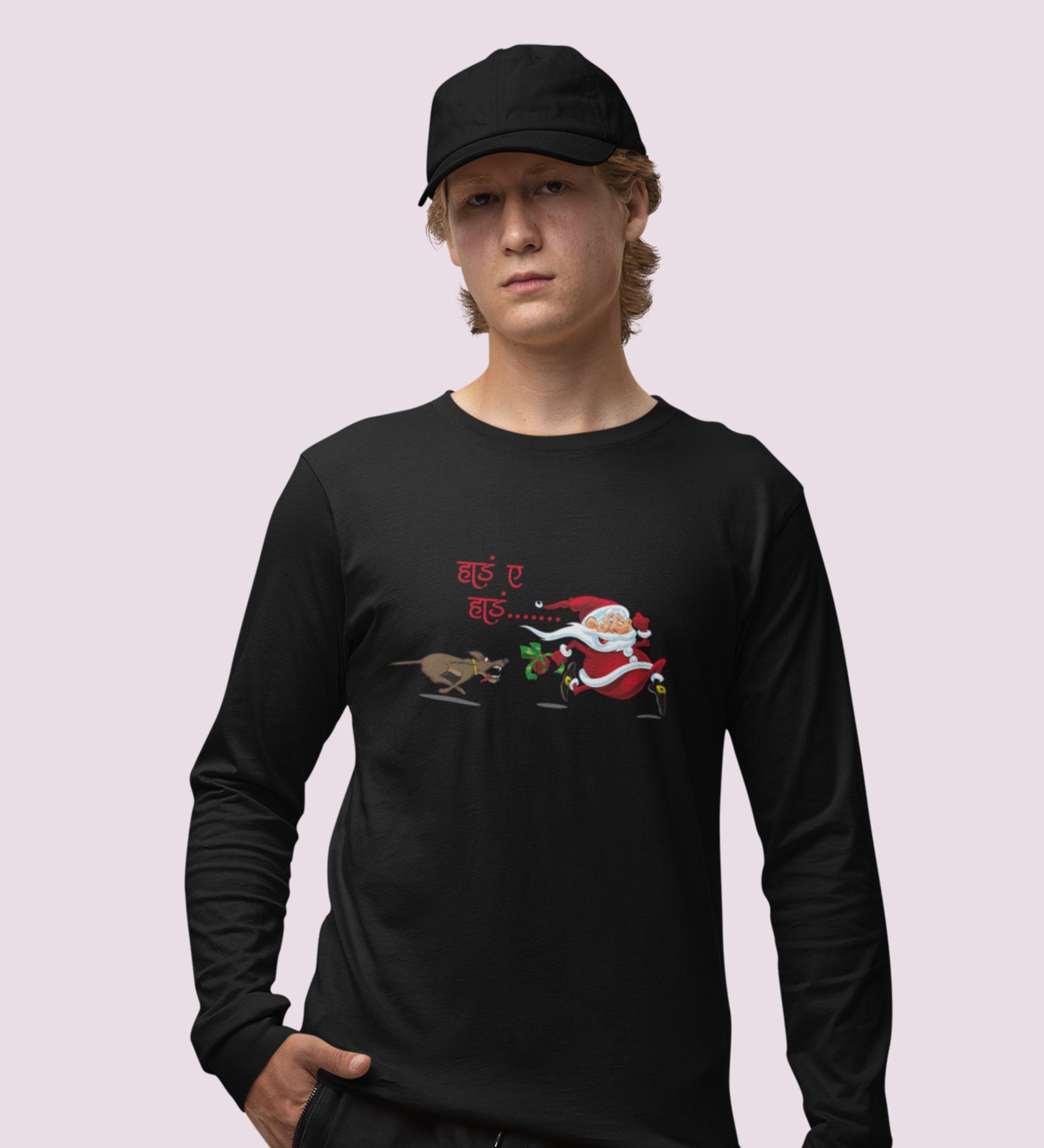Poor Santa: Cute DesignerFull Sleeve T-shirte Black Best Gift For Boys Girls