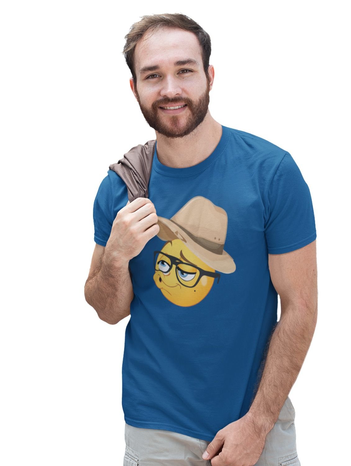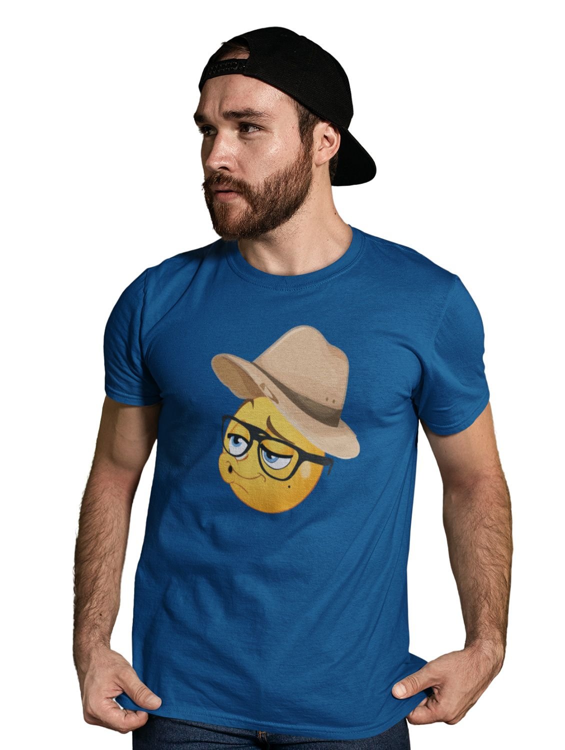 Pouting Emoji with Hat Printed T-shirt (Blue) - Clothes for Emoji Lovers - Suitable for Fun Events - Foremost Gifting Material for Your Friends and Close Ones