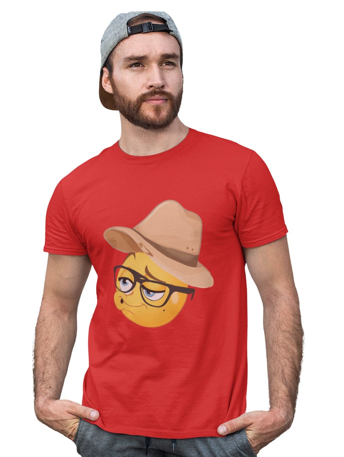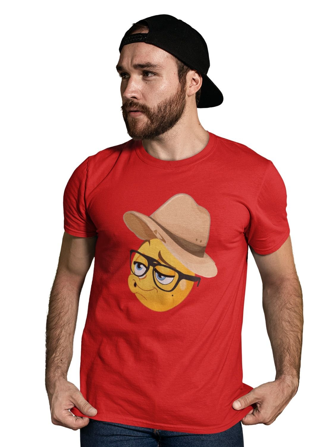 Pouting Emoji with Hat Printed T-shirt (Red) - Clothes for Emoji Lovers - Foremost Gifting Material for Your Friends and Close Ones