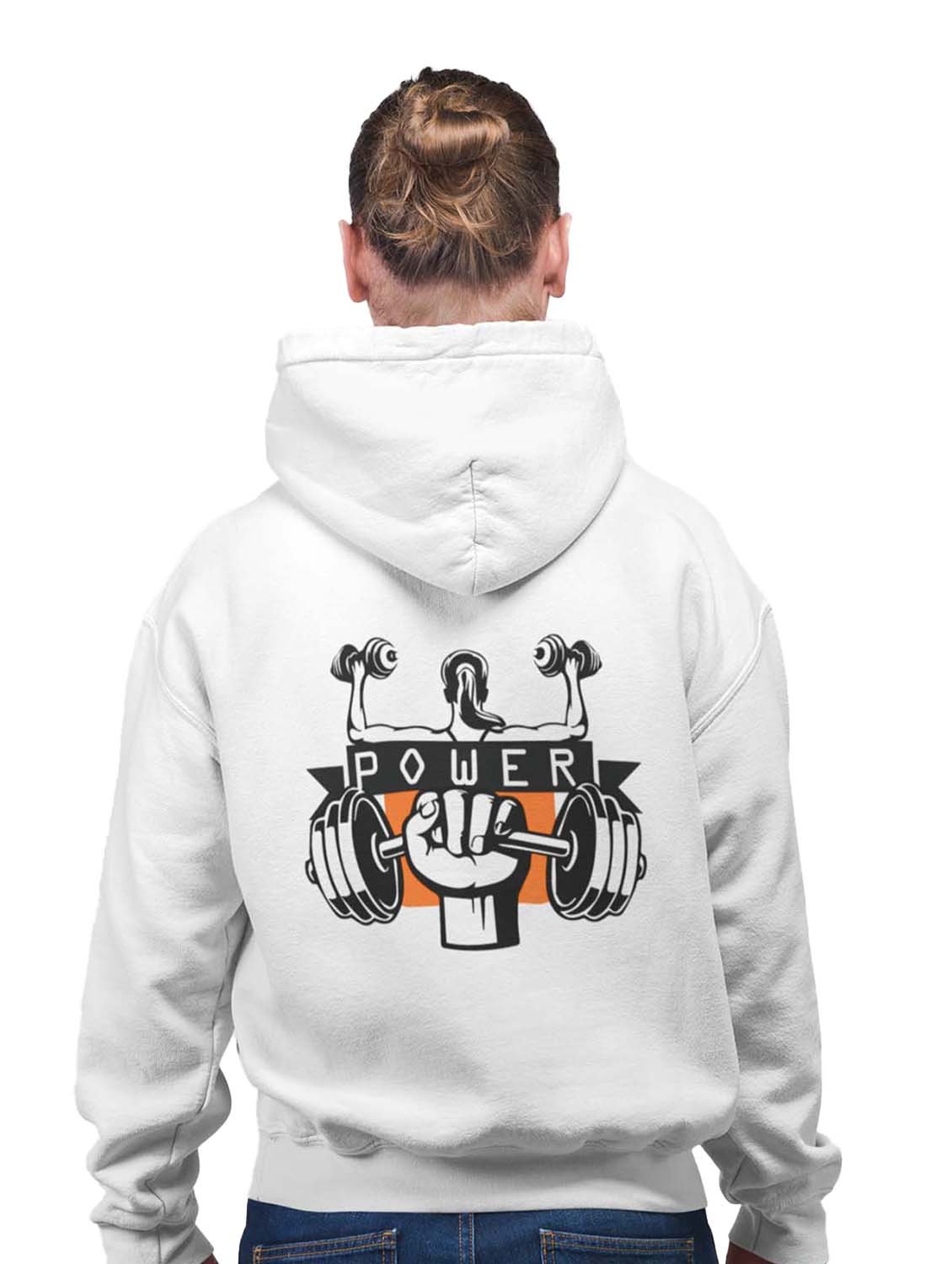 Power, Girl Lifting Weight printed artswear white hoodies for winter casual wear specially for Men