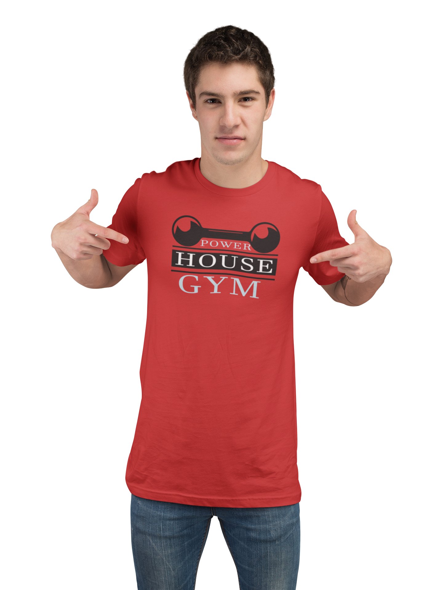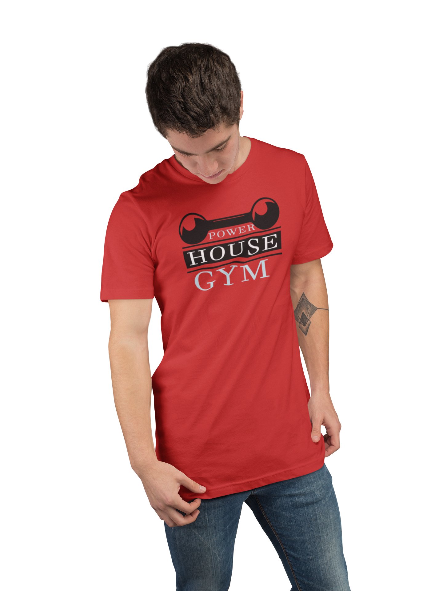 Power House Gym, Round Neck Gym Tshirt (Red Tshirt) - Clothes for Gym Lovers - Suitable for Gym Going Person - Foremost Gifting Material for Your Friends and Close Ones