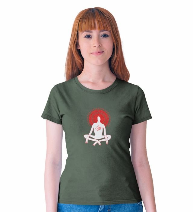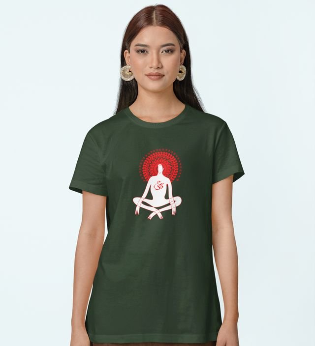 Power Of Om Green Round Neck Cotton Half Sleeved Women T-Shirt with Printed Graphics