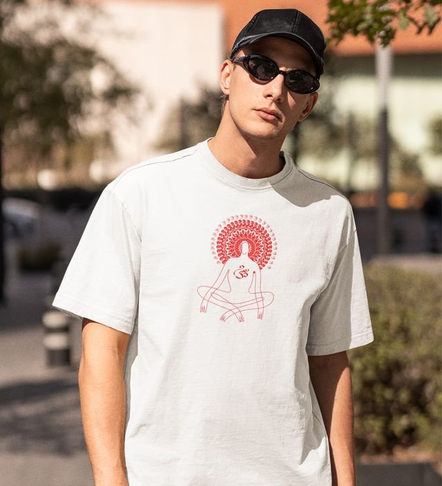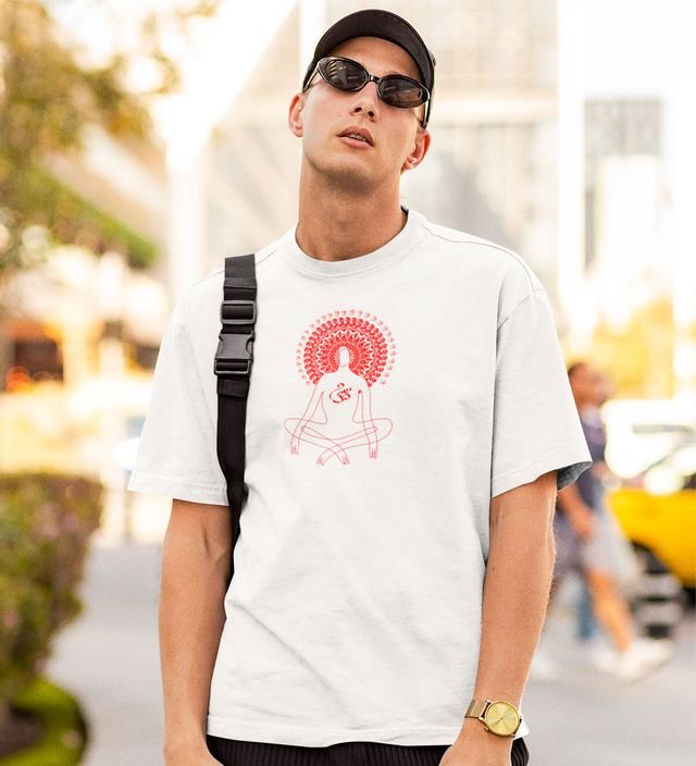 Power Of Om White Round Neck Cotton Half Sleeved Men T-Shirt with Printed Graphics