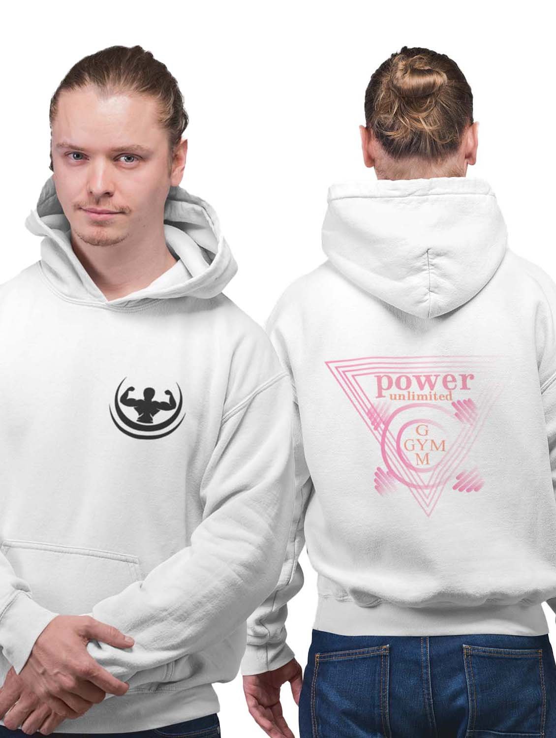 Power Unlimited, (BG Pink) printed artswear white hoodies for winter casual wear specially for Men