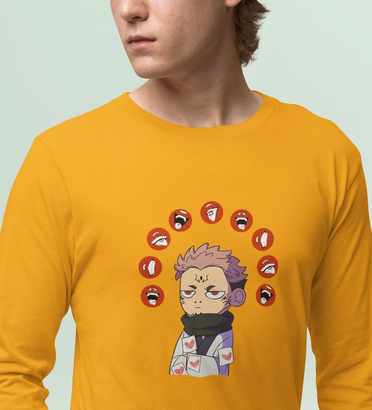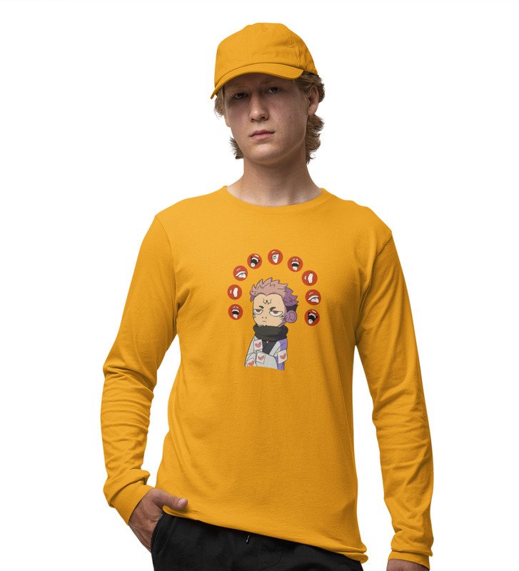 Printed Anime Cotton Yellow Full Sleeves Tshirt For Mens and Boys