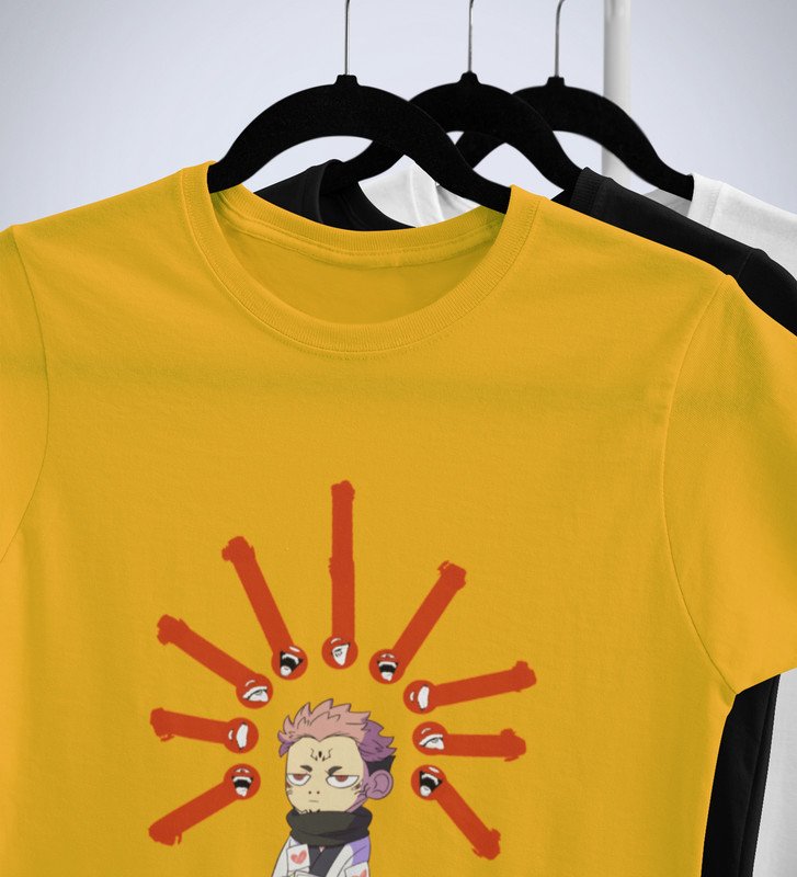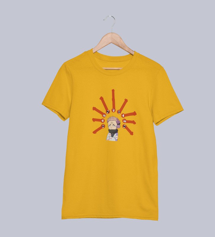 Printed Anime Cotton Yellow Tshirt For Mens and Boys