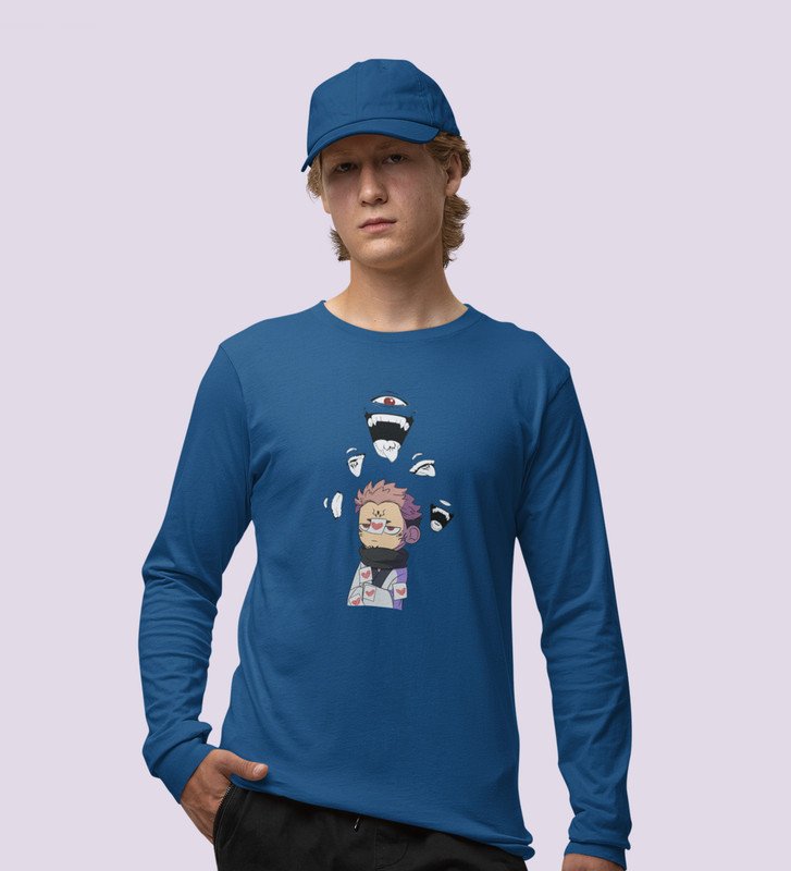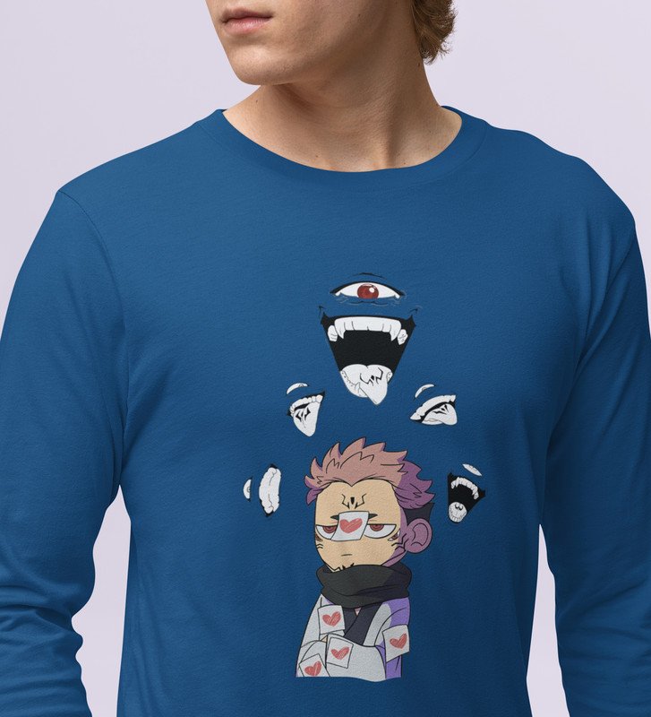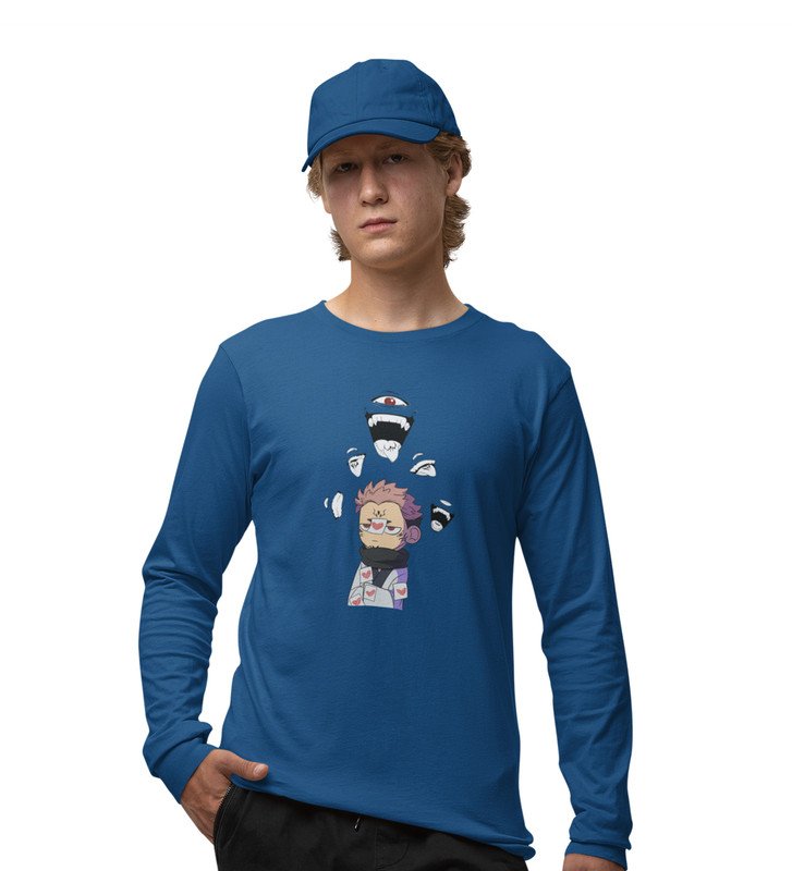 Printed Itadori Anime Cotton Blue Full Sleeves Tshirt For Mens and Boys