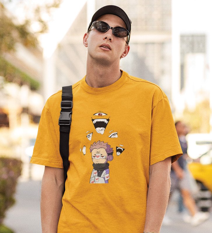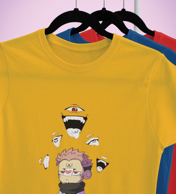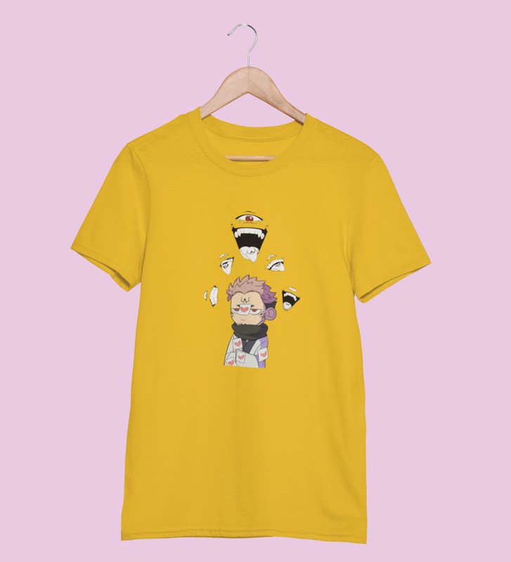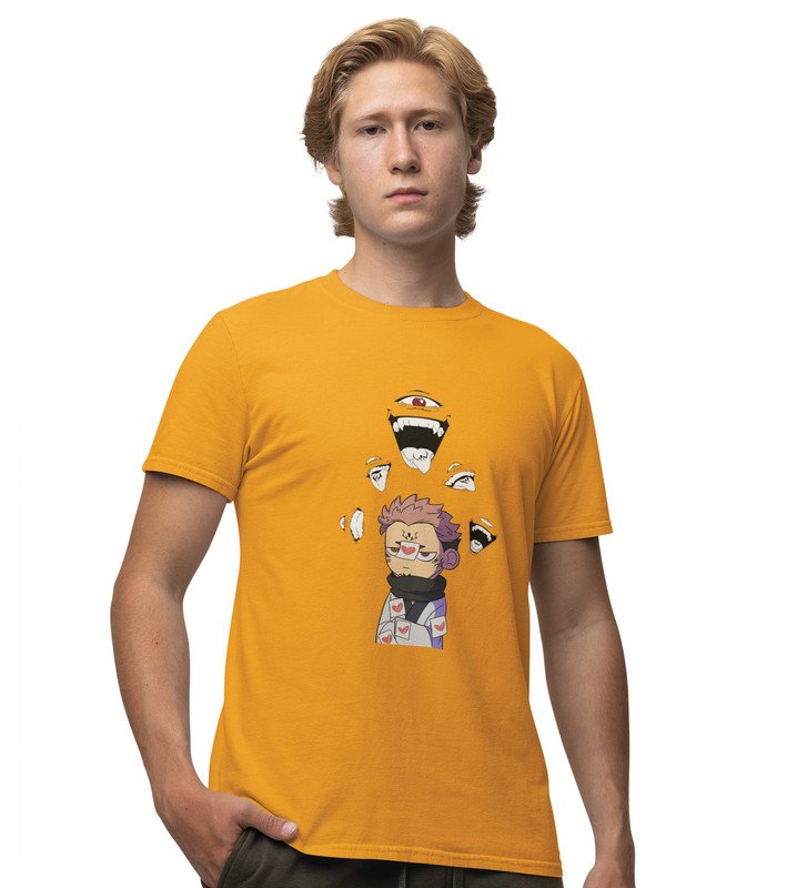 Printed Itadori Anime Cotton Yellow Tshirt For Mens and Boys